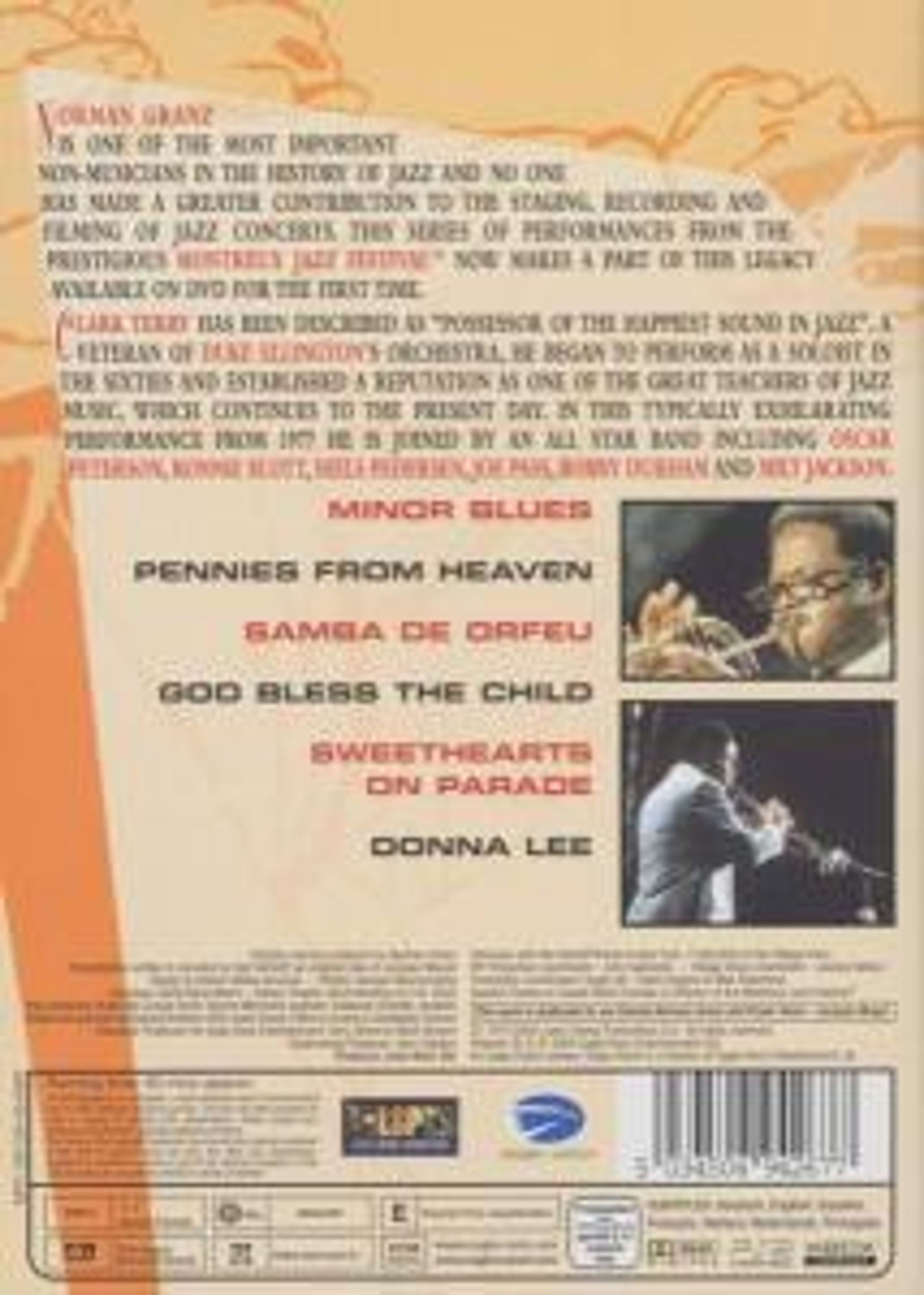 Clark Terry, der "Mann mit dem fröhlichen Jazz-Sound", ist ein Veteran des Duke Ellington Orchesters. In den Sechzigern begann er als Solokünstler, sich einen ihm bis heute voraneilenden Ruf als einer der großartigen Jazz-Lehrer zu machen. Bei seinem typisch spannungsgeladenen Auftritt im Jahr 1977 wird er von einer Allstar-Band begleitet: Oscar Peterson, Ronnie Scott, Niels Pedersen, Joe Pass, Bobby Durham und Milt Jackson.