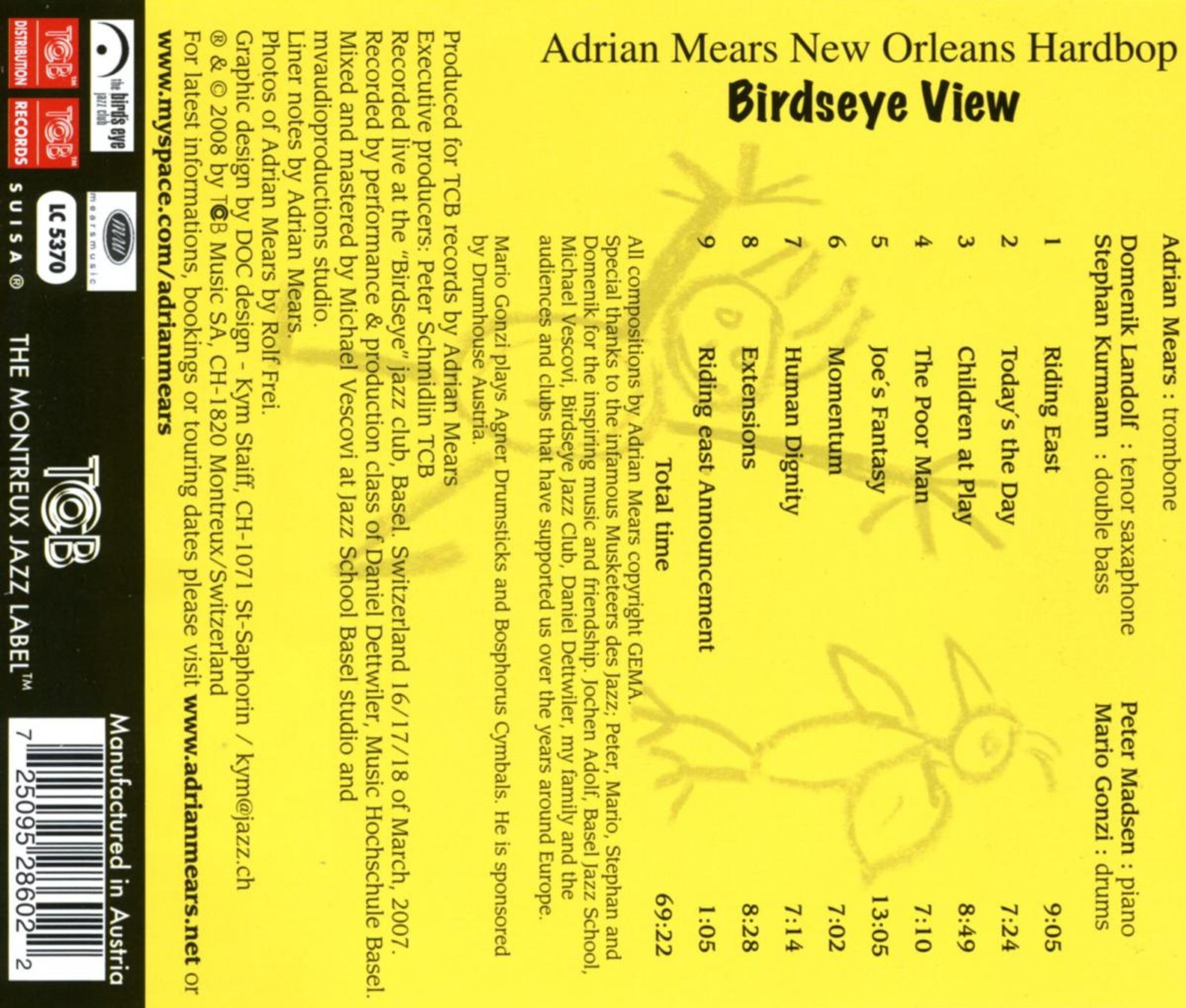 Jorge Vistel (tp). Tom Johnson (tb), Roman Filiù (as), Mario Esconde (bs), Chiaki Mavratari (tuba), Ronnie George (bass dr), Peter Dieterle (snare dr, bells, ld)