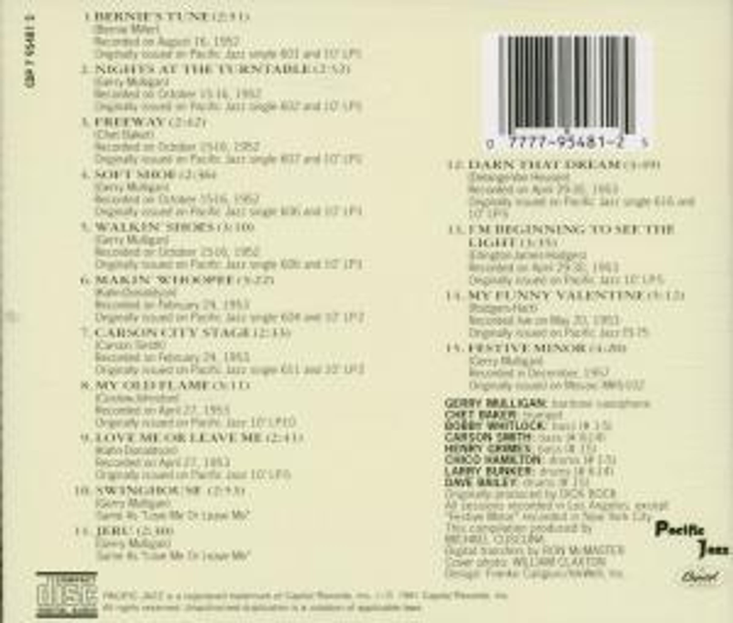 H. Thomas in stereoplay 7/91:"...ein Querschnitt der besten Aufnahmen des 'Gerry Mulligan Quartett' mit 'Chet Baker'. Auch wenn Kunsthall und mildes Rauschen die Klangqualität der Highlights von 1952/53 beeinträchtigen, sollten sich Fans diese umfassende Kollektion nicht entgehen lassen."Disk 1 von 1 (CD)