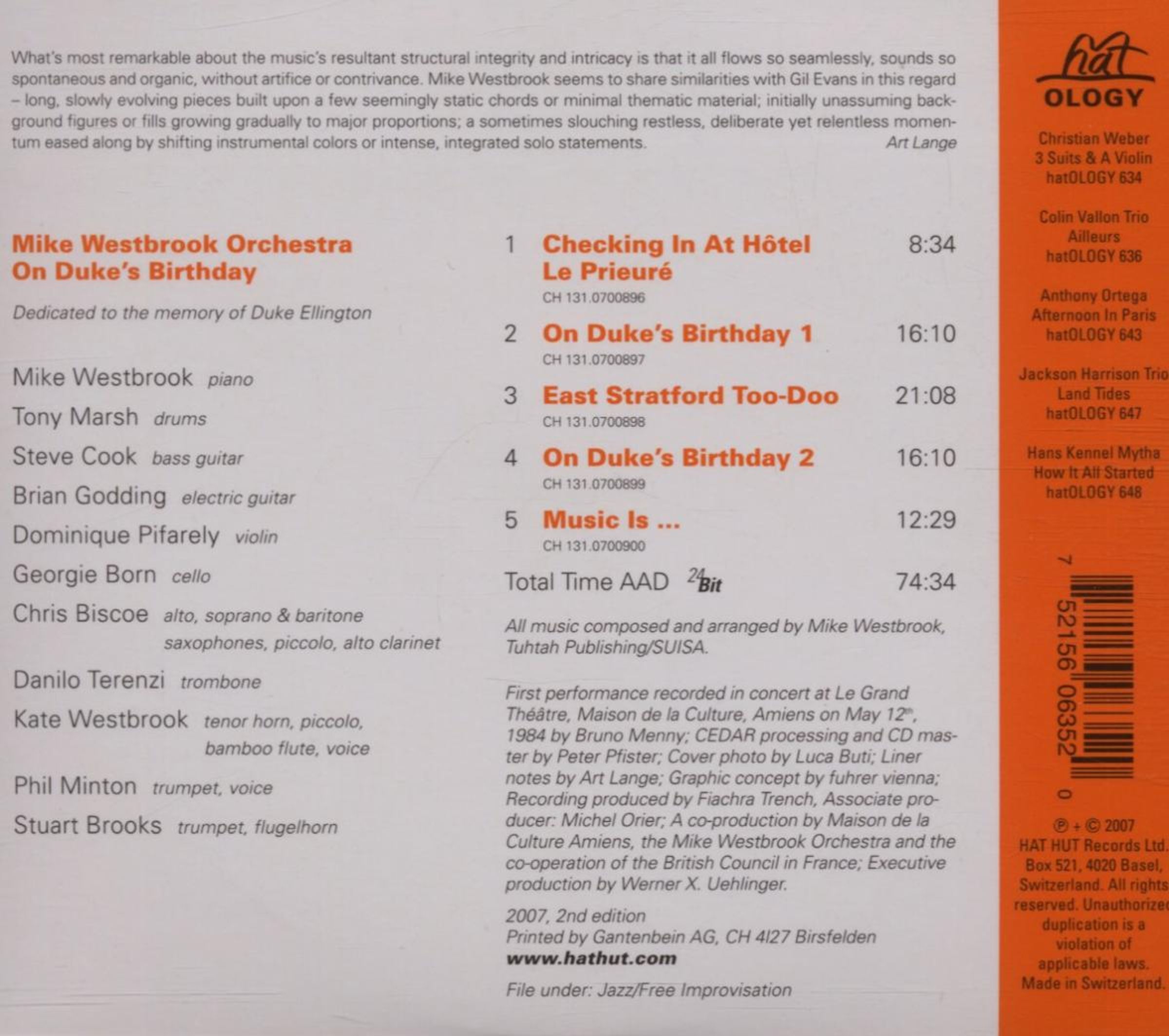 Mike Westbrook: On Duke's Birthday on CD