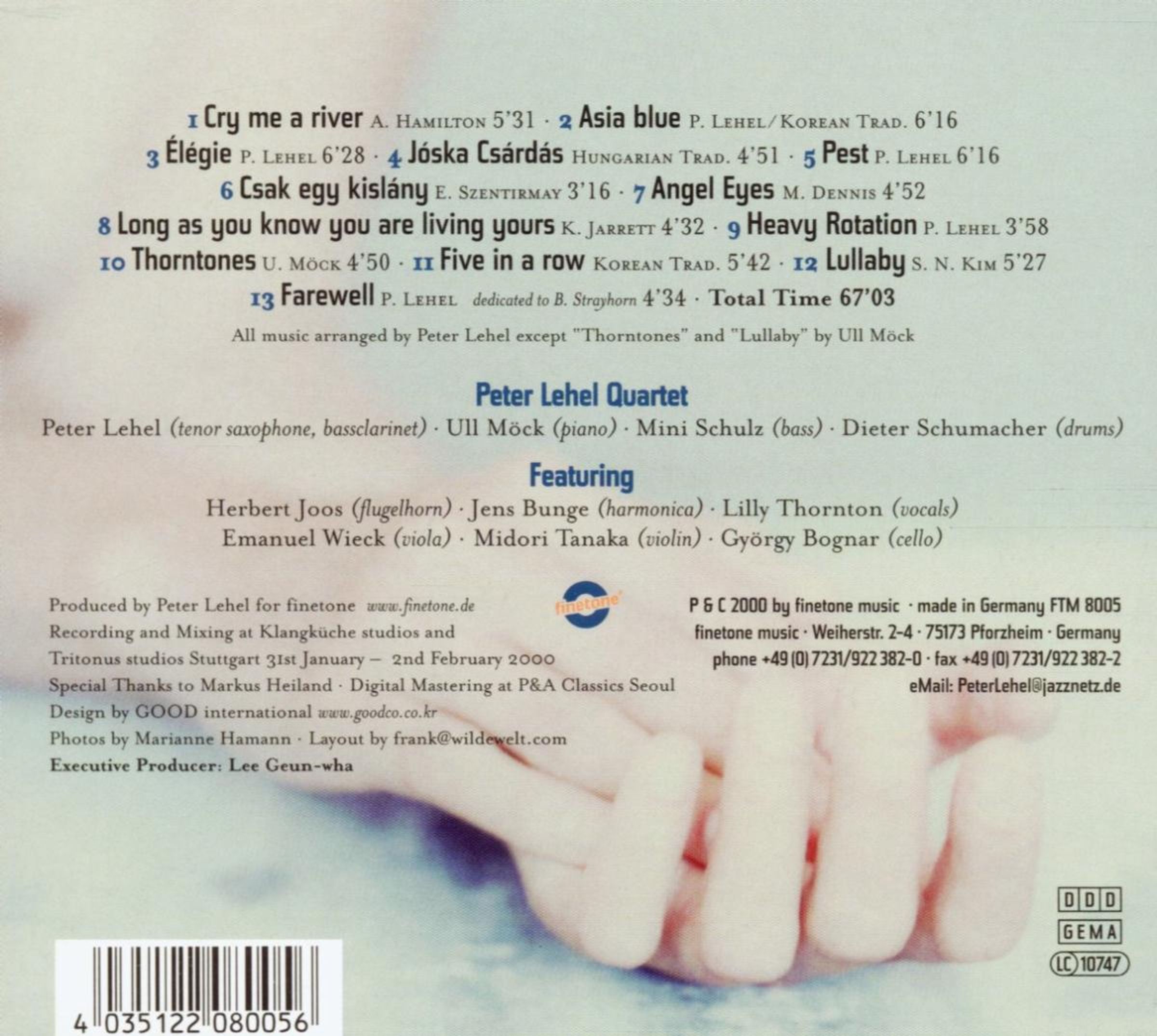 zeigt sich Peter Lehel als Musiker, der nach Melodien sucht. Und er findet diese Melodien, in dem er Themen aus Korea, Ungarn, dem amerikanischen Songbook und seine eigenen Songs verarbeitet. Die Menschen in Korea sprechen immer noch von der musikalischen Vollkommenheit über die er verfügt. Es ist aber nicht nur sein flüssiges und geschmeidiges Spiel sondern auch die Ernsthaftigkeit, die er gegenüber der Musik immer zum Ausdruck bringt. Man könnte darin und in seinem warmen Sound den Einfluss von John Coltrane sehen.