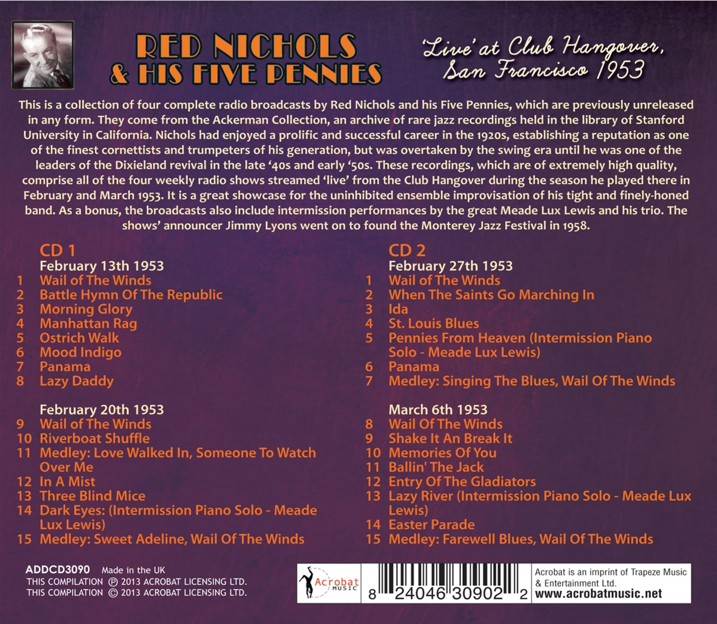 Red Nichols: Live At Club Hangover, San Francisco 1953 on 2 CDs