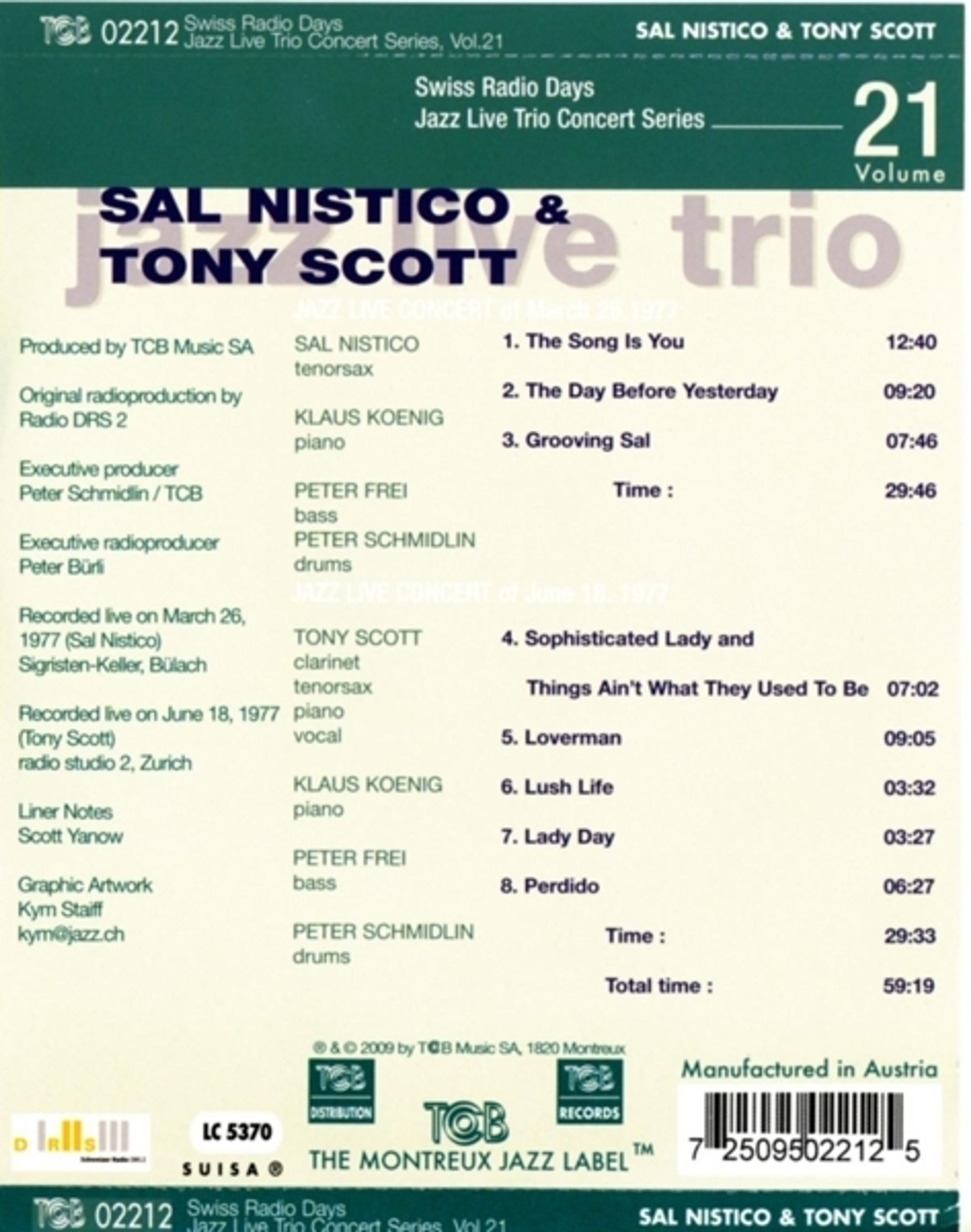 Von 1964 bis 1983 war das ‚Jazz Live Trio‘ aktiv, es war die ‚Hauscombo‘ des Schweizer Radios. Weit über 100 mal wurden internationale Gäste eingeladen, mit dem Trio live vor Publikum im Studio 2 zu spielen. Immer wurde das Ergebnis gesendet – aber nun erscheinen die Aufnahmen erstmals auf Tonträger. Beide Aufnahmen stammen aus dem Jahr 1977, und sind ein historisches Dokument von damals international bekannten Jazzmusikern, die auch dank dieser CD nicht in Vergessenheit zu geraten drohen.