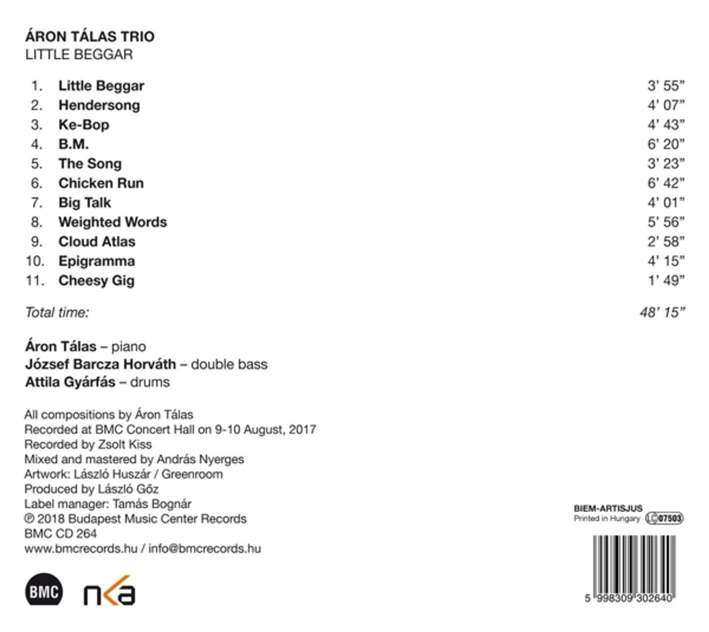 Mit gerade einmal 27 Jahren zählt der Jazzpianist Áron Tálas schon zu den bekanntesten Größen der ungarischen Szene und vermittelt seine außergewöhnlichen Fähigkeiten als Musikhochschuldozent an potentielle Nachfolger. Bei BMC erscheint nun die sechste CD-Einspielung, diesmal ausschließlich mit Eigenkompositionen, die der vielseitige Jazzer zusammen mit dem nach ihm benannten Trio aufgenommen hat.