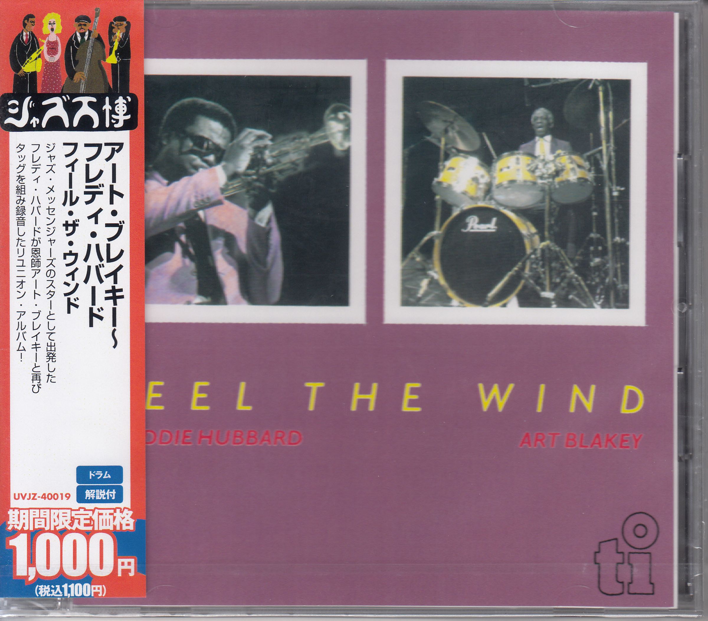 CD-Cover: "FEEL THE WIND" mit Freddie Hubbard und Art Blakey. Auf violettem Hintergrund. Zwei Musikerfotos. Japanischer Info-Streifen links., CD