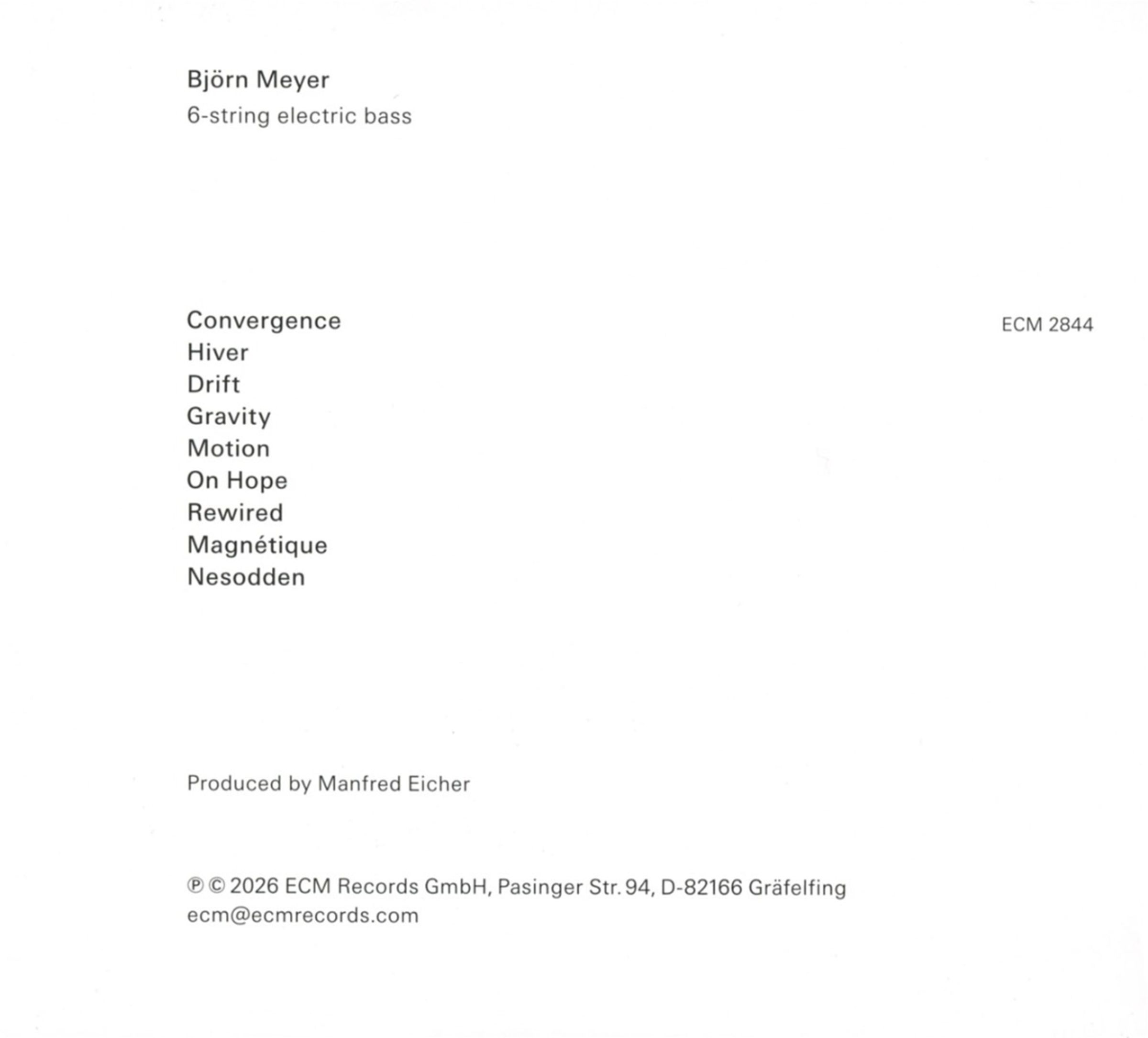 Diesmal hat sich die Szenerie in die Bavaria Musikstudios in München verlagert, einen Ort, der seit Langem mit Filmmusik verbunden ist, und Meyers atmosphärische Erkundungen rufen Bilder im Geist hervor. Parallel zu seinen technischen Innovationen ist er auch als Melodiker gewachsen, und vieles auf »Convergence« trägt eine sehnsuchtsvolle, liedhafte Qualität. Kurz gesagt: Das Album wirkt in sich abgeschlossen, mehr als nur ein Dokument instrumentaler Meisterschaft. Und Hörerinnen und Hörer, die Björn Meyers Beiträge zu ECM-Aufnahmen mit Anouar Brahem (The Astounding Eyes of Rita, Souvenance) und Nik Bärtsch (Stoa, Holon, Llyria) schätzen, werden dieses Soloalbum als bereichernde Erfahrung empfinden.