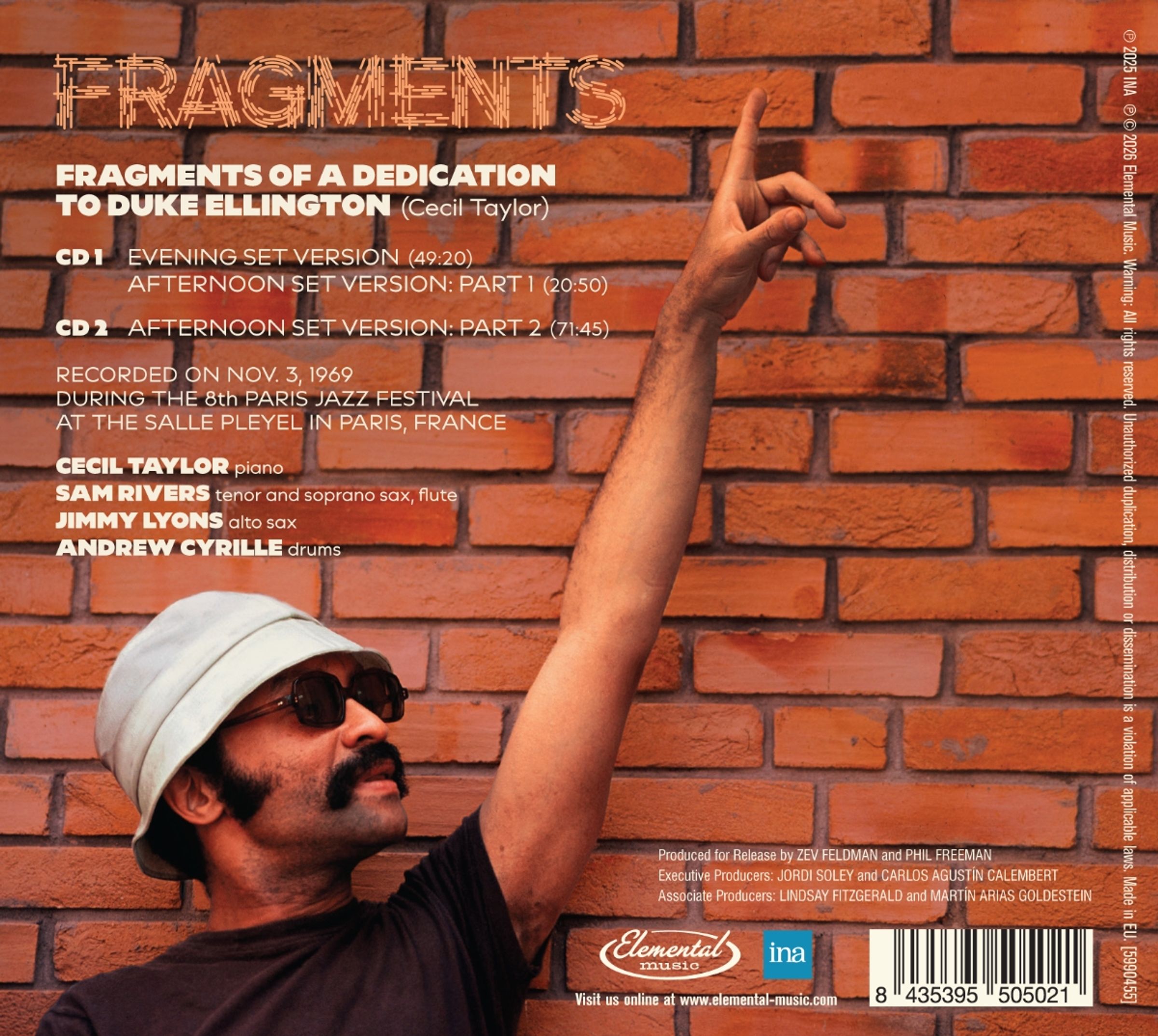 Cecil Taylor – Fragments: The Complete 1969 Salle Pleyel Concerts ist eine monumentale, bisher unveröffentlichte Live-Aufnahme der Cecil Taylor Unit beim 8. Pariser Jazzfestival am 3. November 1969. Die Band spielte zwei komplette Sets in der legendären Salle Pleyel. Dieses historische Konzert präsentiert eine hochkarätige Besetzung mit Cecil Taylor (Piano), Sam Rivers (Tenor- und Sopransaxophon, Flöte), Jimmy Lyons (Altsaxophon) und Andrew Cyrille (Schlagzeug).