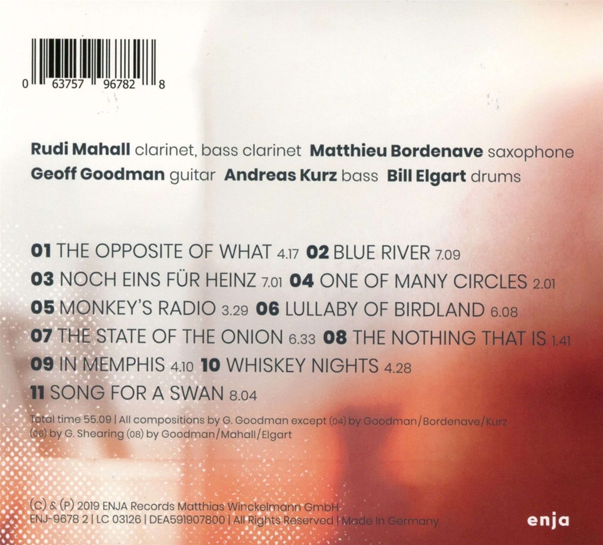 Rudi Mahall und Bill Elgart waren vor 15 Jahren in Goodmans ursprünglichem Quintett - Jetzt hat Goodman mit den beiden renommierten Münchner Jazzmusikern Matthieu Bordenave und Andreas Kurz das Quintett vervollständigt. Signifikant ist die gemeinsame Haltung aller fünf Musiker basierend auf Vertrauen, Risiko, Neugier und Humor.