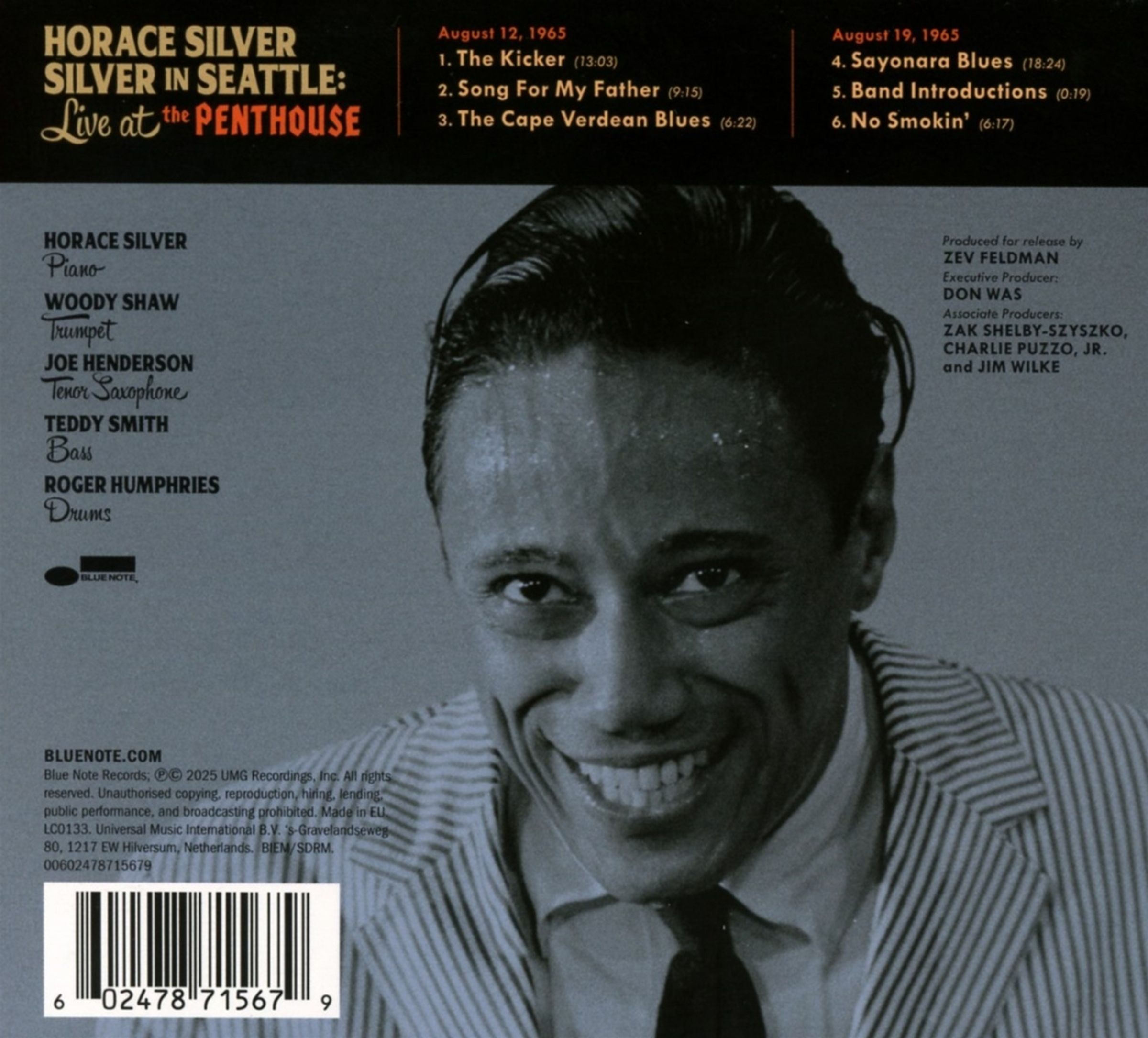 Seine Musik war immer spontan, mitreißend, funky und voller Energie, trotzdem hat Blue-Note-Legende Horace Silver zu Lebzeiten nur ein einziges Livealbum veröffentlicht. Das ändert sich jetzt! Im August 1965 glänzte der Pianist mit einer besonders innovativen Besetzung im Penthouse-Jazzclub in Seattle, mit Woody Shaw an der Trompete, Joe Henderson am Tenorsaxofon, Teddy Smith am Bass und Roger Humphries am Schlagzeug. Der erst jetzt entdeckte Mitschnitt erlebt seine Weltpremiere unter dem Titel »Silver in Seattle: Live at the Penthouse«. Darauf feuert die Band unter anderem kochende Interpretationen von Silver-Klassikern wie »Song For My Father«, »Cape Verdean Blues« und »The Kicker« ab.