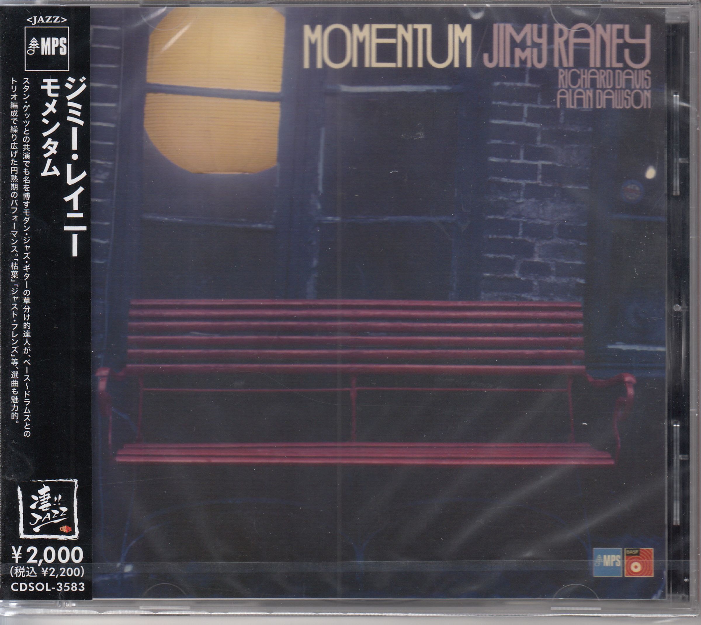 "Momentum Jimy Raney Richard Davis Alan Dawson" steht auf der Hülle. Rote Bank unter Straßenlaterne an Backsteinwand., CD