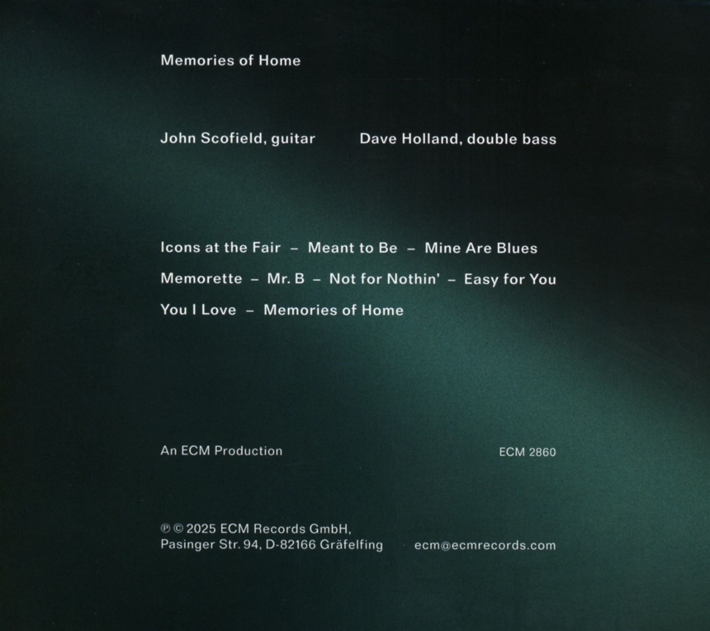 »Memories of Home« ist nun ihr erstes Duo-Album, letztes Jahr nach ausgiebigen Tourneen in den NRS Studios in Catskill, New York, aufgenommen. John Scofield: »Die Platte enthält, genau wie unsere Live-Shows, Stücke, die jeder von uns komponiert hat, einige neu, einige alt. Wir teilen jahrzehntelange gemeinsame musikalische Bezugspunkte. Die Gemeinsamkeiten und Unterschiede in unseren Herangehensweisen machen die Zusammenarbeit, wie ich finde, umso spannender.«