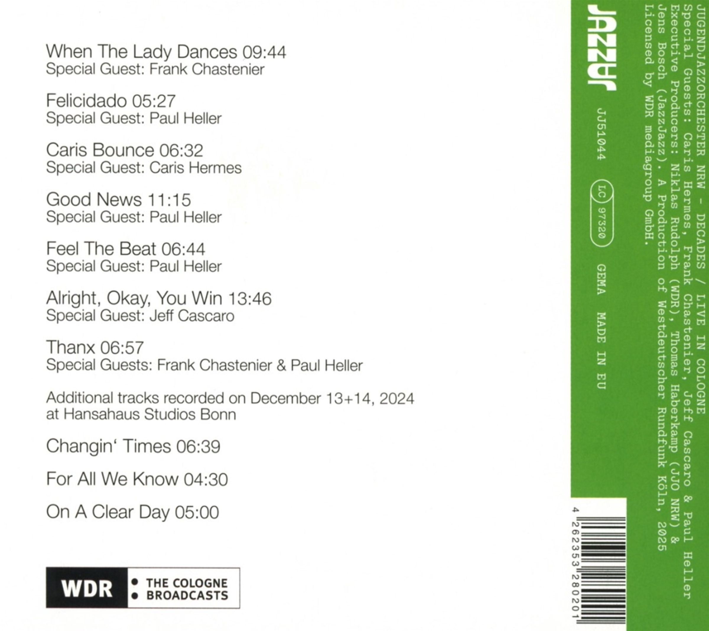 Mit »Decades (Live In Cologne)« setzt sich die Institution zur Förderung von Jazzmusiker*innen ein Tonträger-Denkmal zum Jubiläum - neun Songs, live aufgenommen an der Kölner Hochschule für Musik und Tanz, erscheinen als CD auf JazzJazz.