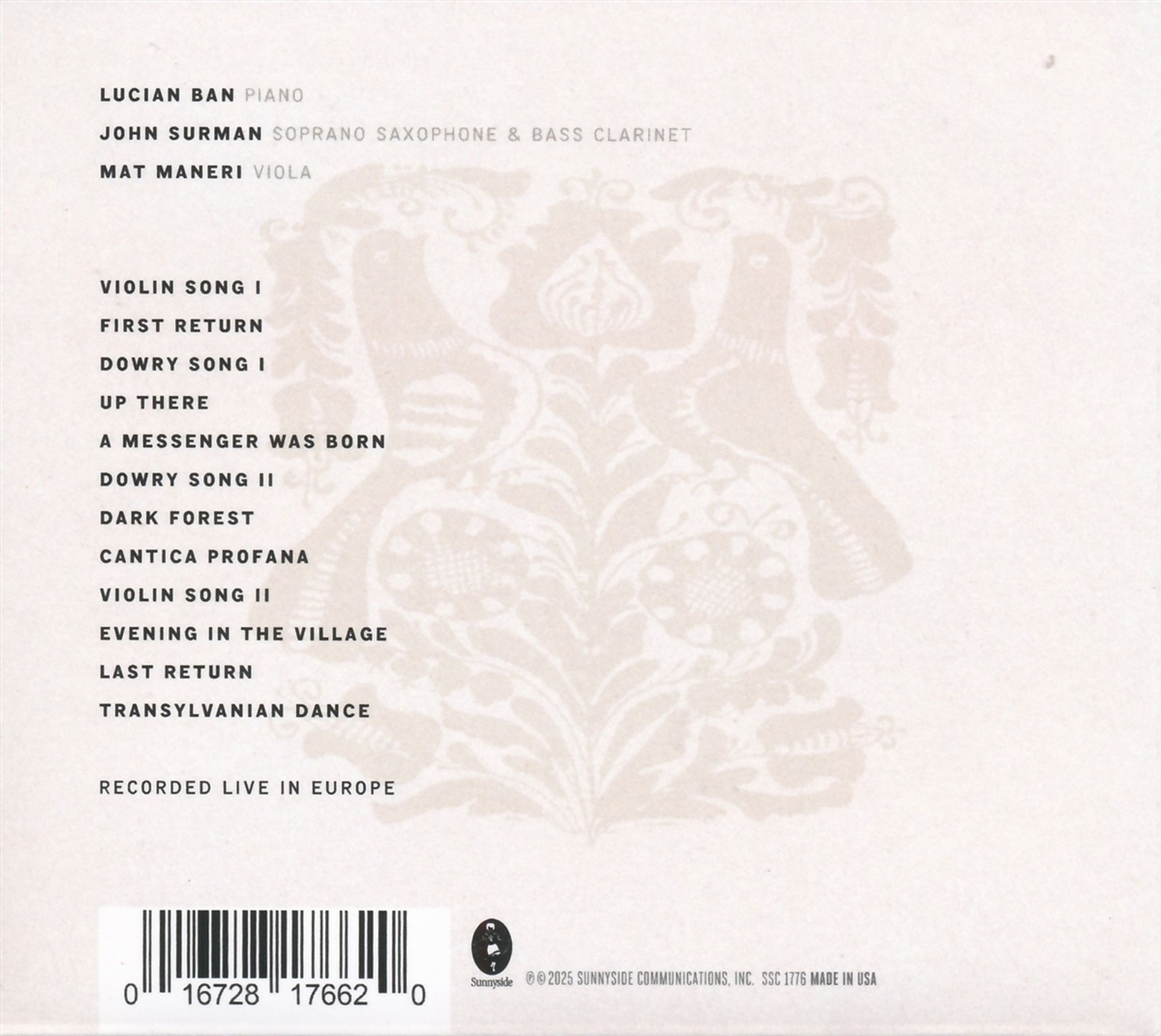 Die langjährigen Mitstreiter Lucian Ban (Piano) und Mat Maneri (Viola) erkunden gemeinsam mit dem legendären Holzbläser John Surman die Volksmusik Transsilvaniens, die Béla Bartók vor über hundert Jahren gesammelt hat. In den letzten fünf Jahren hat das Trio auf Tourneen den Geist seiner Musik vertieft.