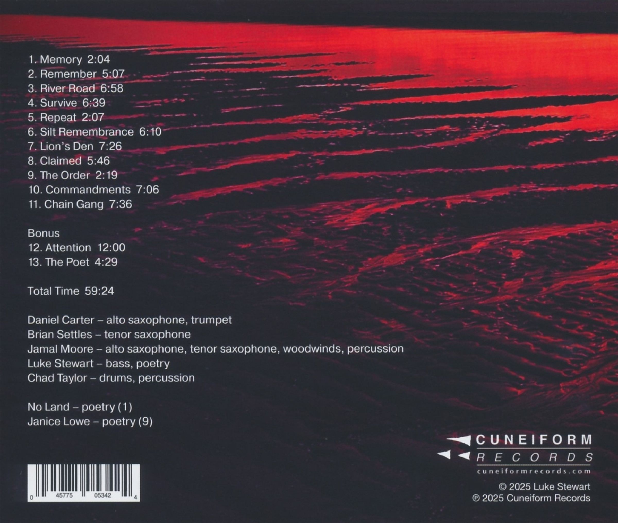 Der renommierte Bassist Luke Stewart, der seit fast zwei Jahrzehnten als treibende Kraft in der Jazz- und Improvisationsszene der US-Ostküste gilt, verbindet auf diesem Album zwei seiner wichtigsten Projekte: das Remembrance Quintet und das Silt Trio. Entstanden ist daraus das Silt Remembrance Ensemble – ein Kollektiv, das gleichermaßen die Geschichte achtet wie den Aufbruch in unkartiertes klangliches Terrain wagt.