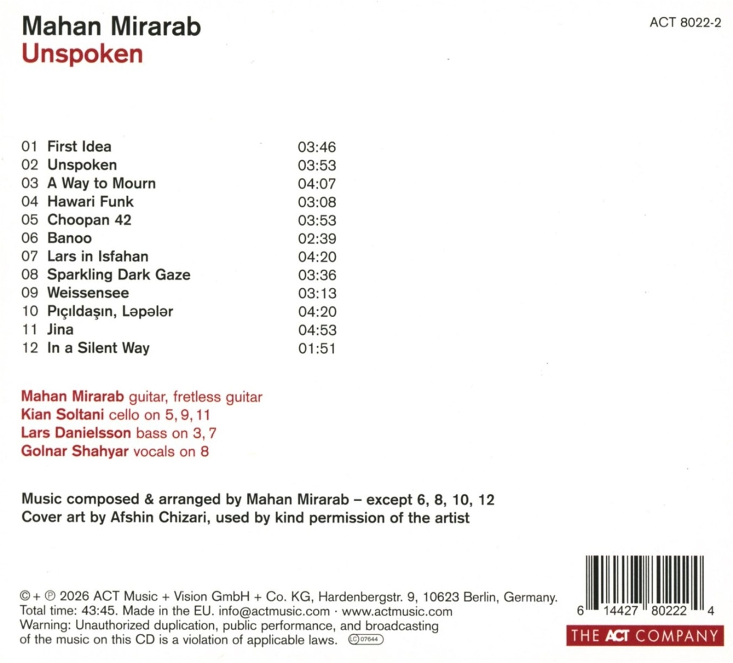 Mahan Mirarab: Unspoken (Digipak) auf CD