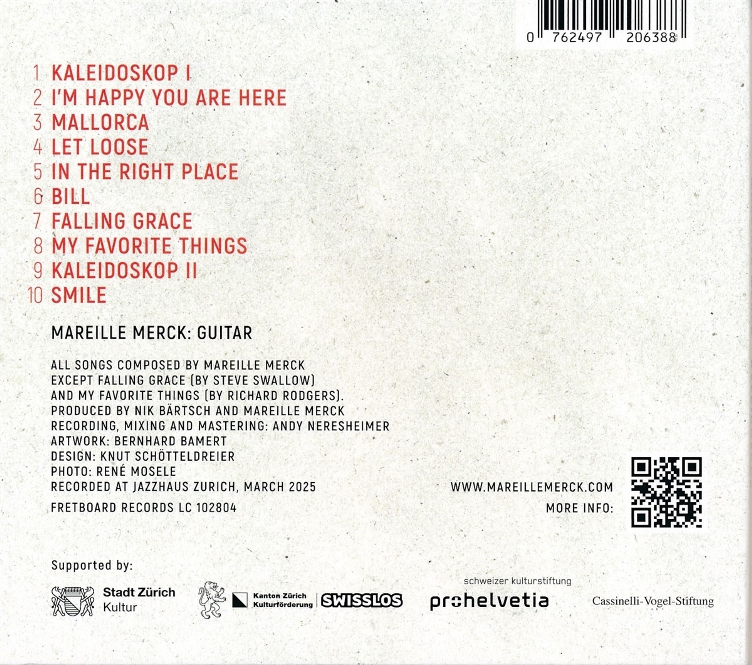 Die in Zürich ansässige Gitarristin und Komponistin Mareille Merck, die sich schon mit Stars wie John McLaughlin die Bühne teilte, für den ZKB Jazzpreis nominiert war und an zahlreichen Festivals wie dem Montreux Jazzfestival, den Langnau Jazz Nights, dem Cully Jazz u. v.m. auftrat, zeigt einen sorgfältig zusammengestellten Querschnitt des aktuellen Live-Repertoires.
