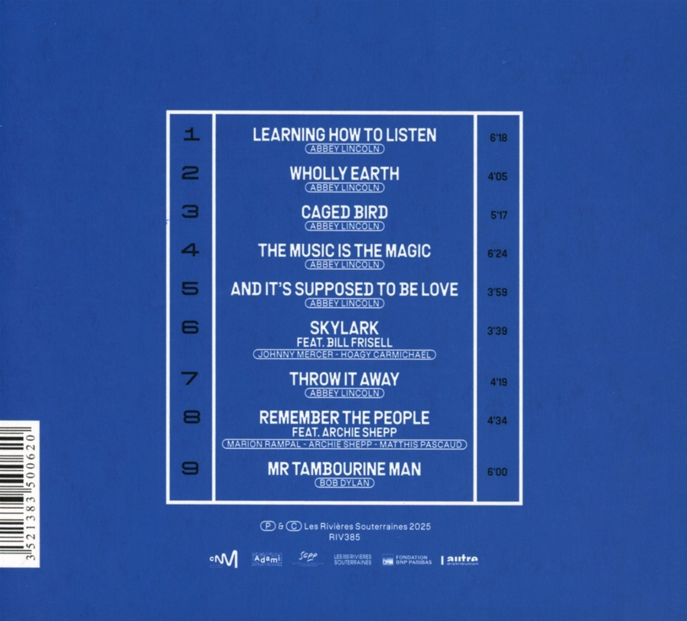 Gemeinsam mit Gitarrist und Produzent Matthis Pascaud entwirft Rampal ein farbenreiches Klangbild zwischen Jazz, Blues, Folk und freieren Formen. Unterstützt wird das Projekt von einer hochkarätigen Band: Raphaël Chassin am Schlagzeug, Thibault Gomez am Klavier und Simon Tailleu am Kontrabass sorgen für Tiefe, Dynamik und Raum. Besondere Akzente setzen die renommierten Gäste Bill Frisell, der »Skylark« mit subtiler Eleganz veredelt, sowie Jazzlegende Archie Shepp, enger Weggefährte Abbey Lincolns, der auf einem gemeinsamen Originaltitel seine Stimme und Geschichte einbringt. Ein emotionales, kraftvolles Werk mit internationaler Strahlkraft, das Abbey Lincolns Geist in die Zukunft trägt.