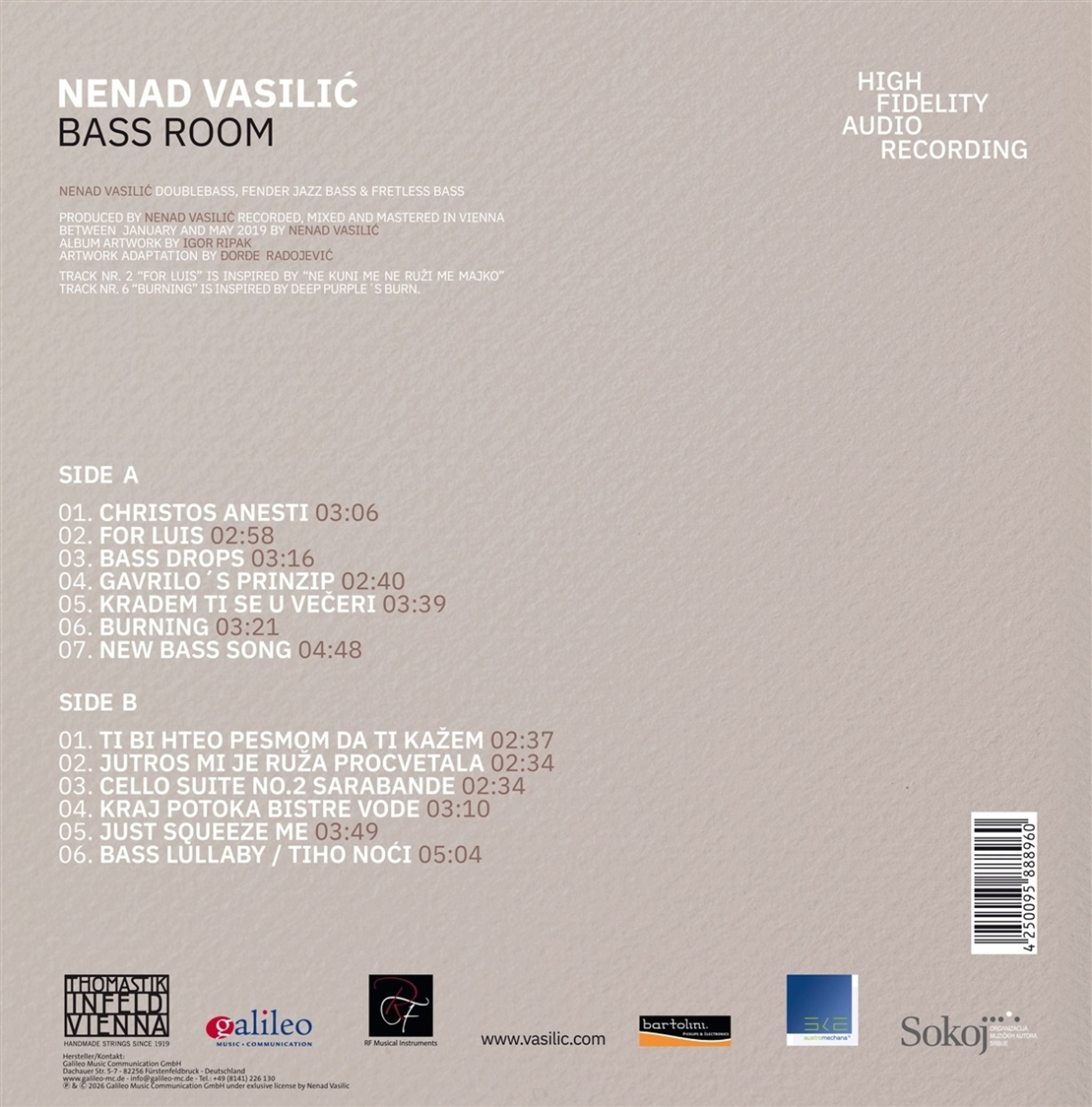 Der Bassist Nenad Vasilic hat die Themen und Rhythmen seiner Heimatregion Serbien, aber auch des ganzen Balkans, zu einem wesentlichen Bestandteil seines musikalischen Konzepts gemacht. In Verbindung mit Elementen der zeitgenössischen Jazzmusik entwickelte er im Laufe der Zeit eine eigenständige Spielart des europäischen World-Jazz. Bass Room" ist ein reines Bass-Album, eingespielt und in Realtime aufgenommen - einzig und allein am Bass. Mit seinem Kosmopolitischer Balkan-Jazz" hat sich