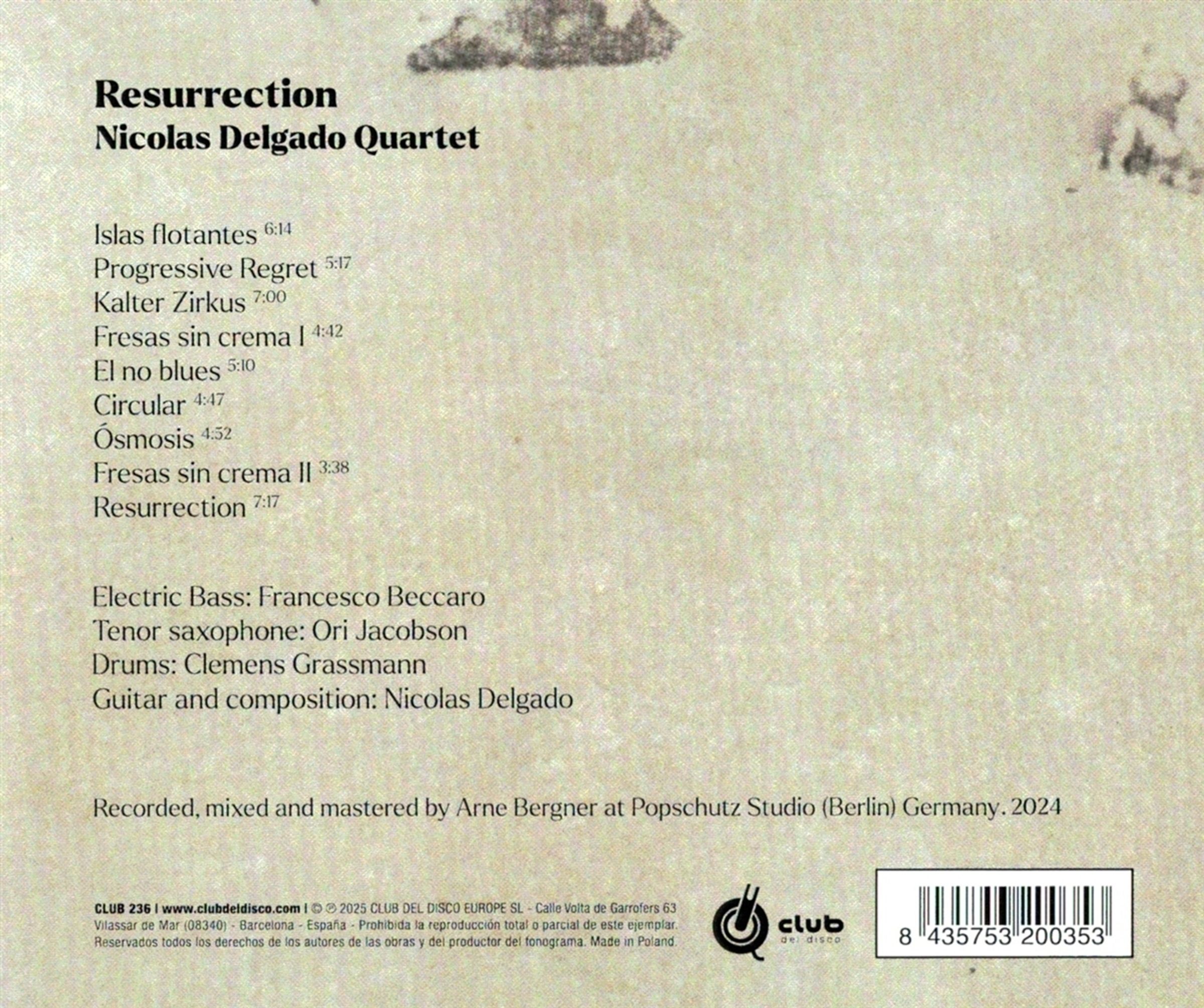 »Resurrection« markiert eine Phase der kreativen Erneuerung für Nicolas Delgado, der ein Quartett leitet, das neue Klanglandschaften im zeitgenössischen Jazz erkundet. Das Album kombiniert Eigenkompositionen mit einem starken Bebop-Einfluss und versucht, dessen Geist aus einer modernen Perspektive wiederzubeleben.