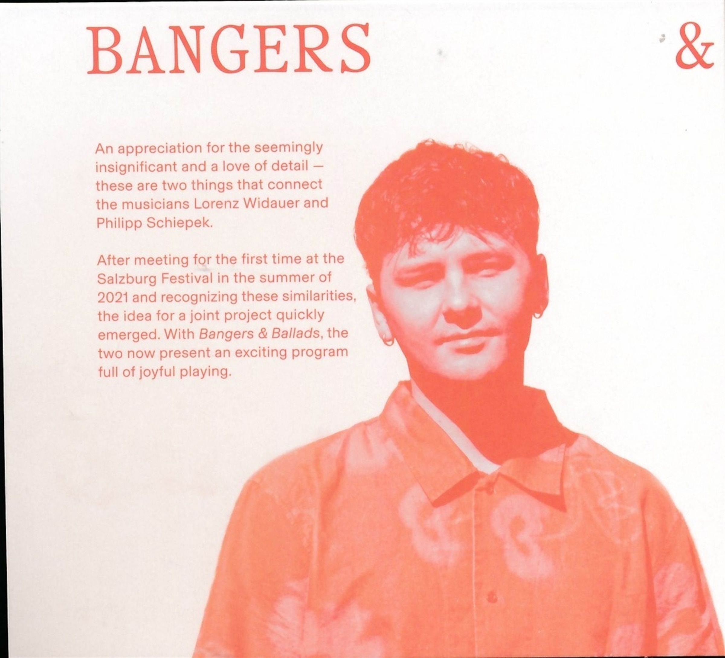 Mit Bangers & Ballads präsentieren Lorenz Widauer und Philipp Schiepek ein spannendes, voller Spielfreude steckendes Programm, das sie mit den in Freundschaft verbundenen Musikern, dem Brasilianischen Schlagzeuger Matheus Jardim und dem aus Rumänien stammenden Bassisten Michael Acker, aufgenommen haben. Entstanden ist ein Album, das starke Melodien, die unmittelbar und direkt daherkommen mit Kompositionen von tiefer und erzählerischer Feinfühligkeit in natürlicher Weise miteinander verbindet.