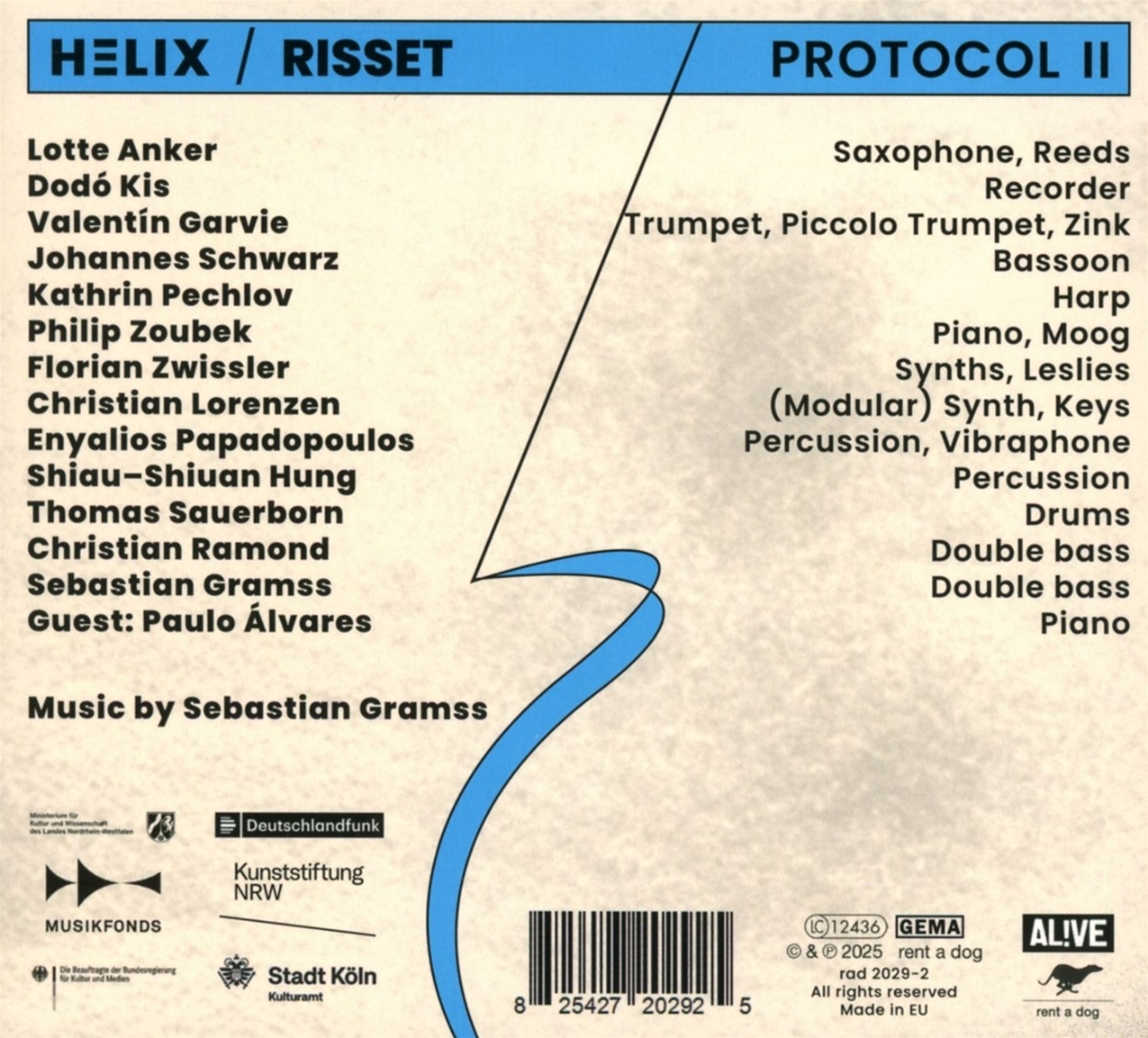Erneut hat der Deutschlandfunk eine orchestrale Produktion mit Gramss-Kompositionen ermöglich wie schon 2023 mit „Urschall - Repercussions“. 2024 versammelten sich in der Alten Feuerwache, Köln 13 internationale Protagonisten um mit einem ausgefallen Instrumentarium (u. a. Harfe, Fagott, Recordern, modularen Synthesizern und sehr viel Perkussion) unter zu Hilfenahme von Tranceducern die ausverkaufte Feuerwache in eine nie gehörte Sonic Ambience zu verwandeln. Der Kölner Komponist Sebastian Gramss setzt sich selbst mit der Veröffentlichung der Trilogie HELIX / RISSET PROTOCOL I - III ein Denkmal.