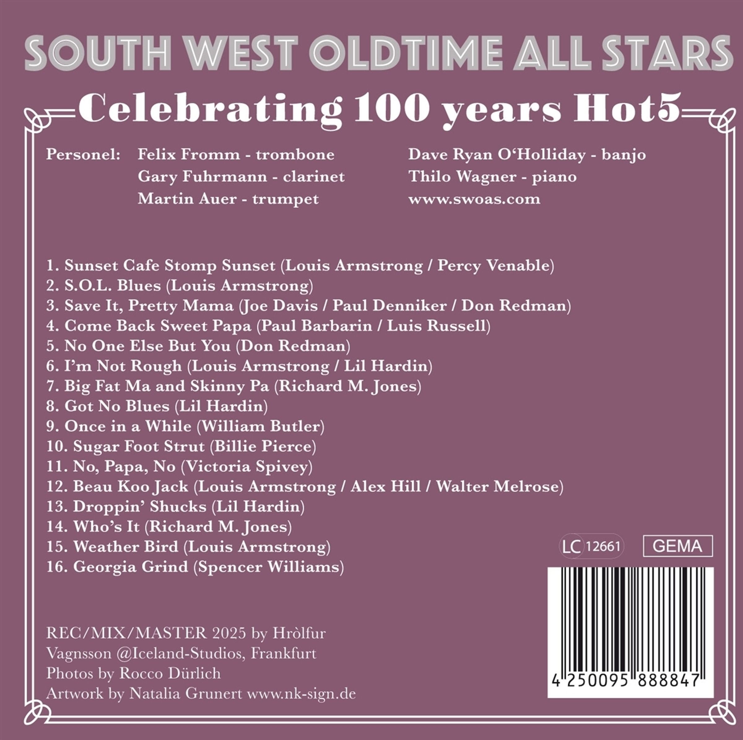 Mit ihrem neuen Album feiern die SWOAS 100 Jahre Louis Armstrongs Hot5" und spielen zahlreiche Konzerte in der Original Hot5-Besetzung!