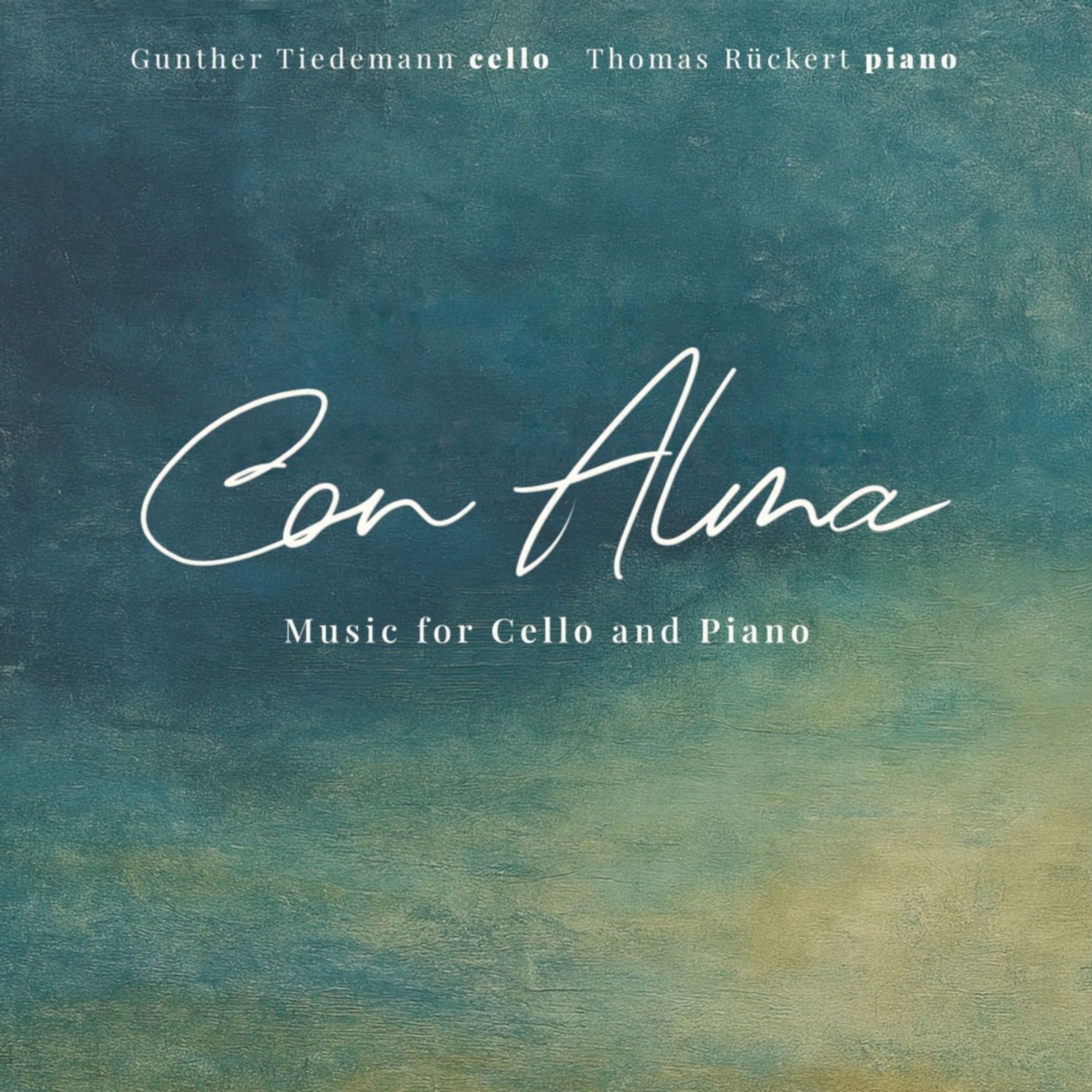 Gunther Tiedemann cello, Thomas Rückert piano, Con Alma, Music for Cello and Piano. Hintergrund in Blau- und Grüntönen., CD