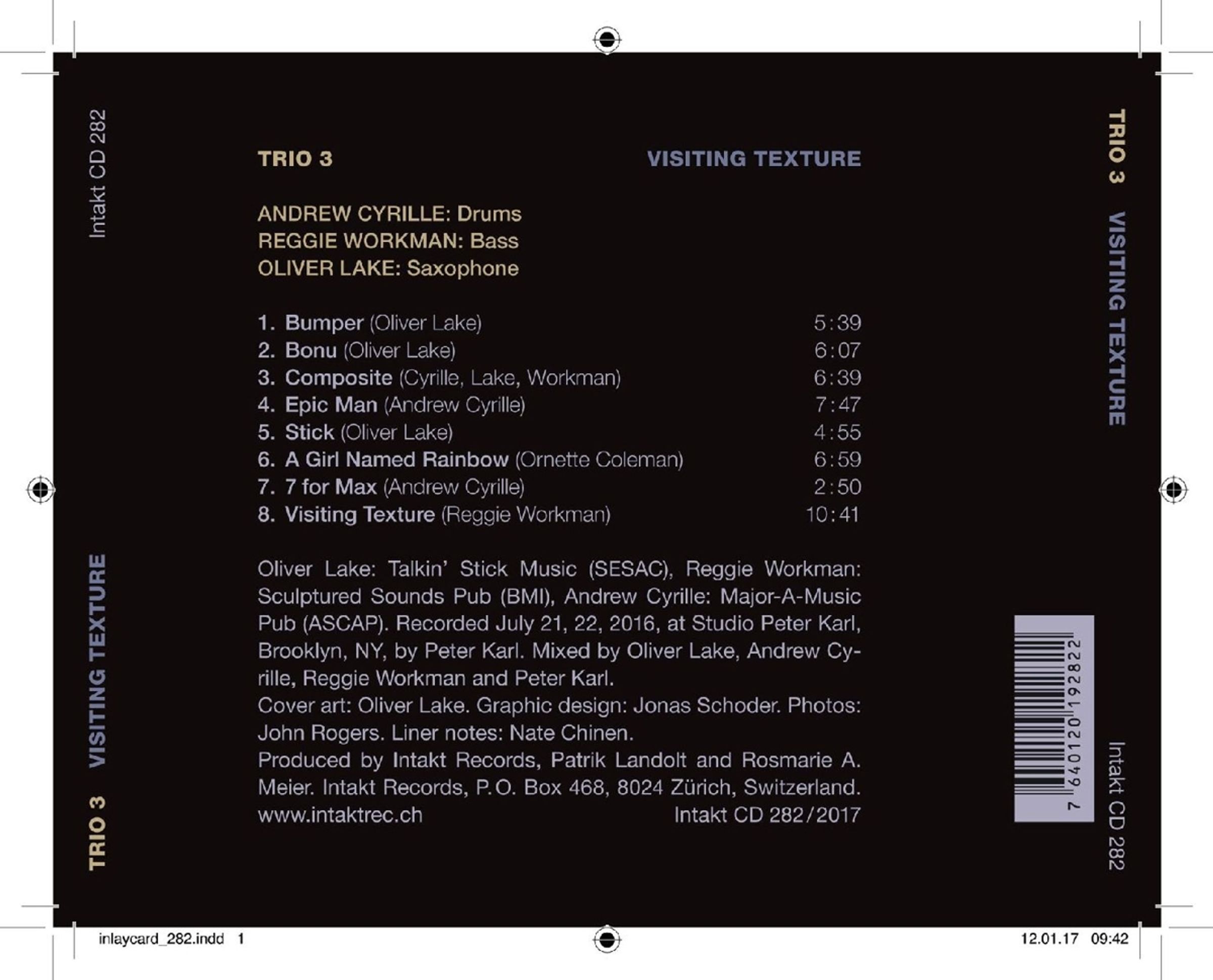 Das Album »Visiting Texture« markiert das erste Studio-Projekt des Trios 3 mit Oliver Lake, Reggie Workman und Andrew Cyrille seit der hochgelobten Aufnahme »Time Being«, die vor über einem Jahrzehnt erschien. In der Zwischenzeit arbeitete Trio 3 mit einigen herausragenden Jazzpianistinnen und -pianisten wie Geri Allen, Irène Schweizer, Vijay Iyer und Jason Moran zusammen.