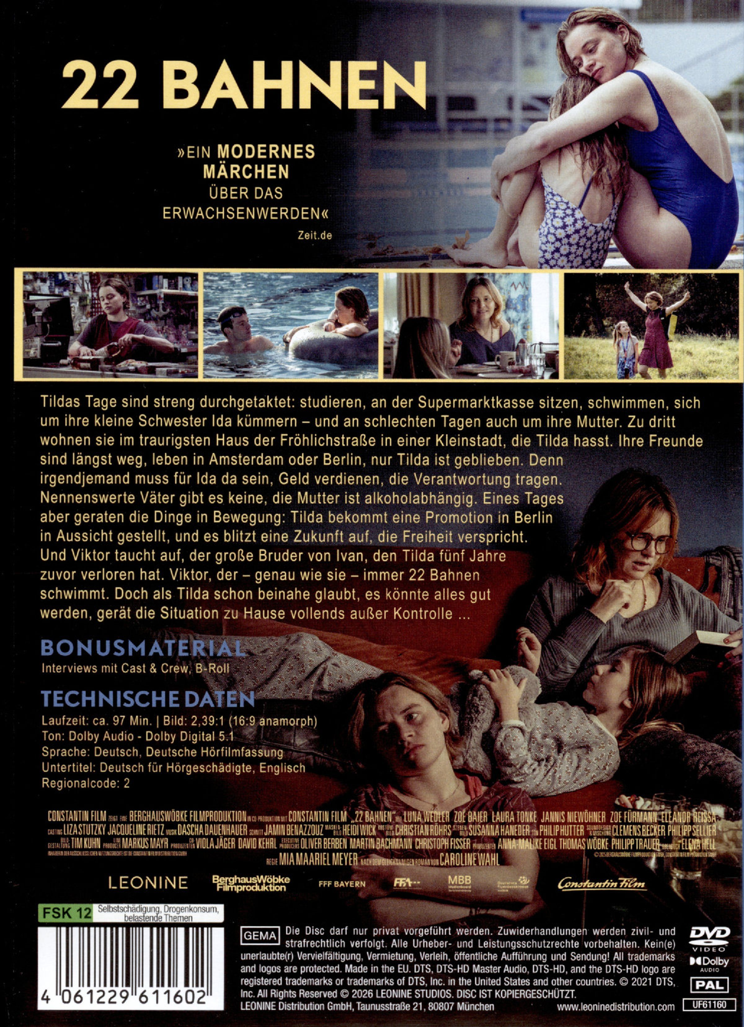 Tildas Tage sind streng durchgetaktet: studieren, an der Supermarktkasse sitzen, schwimmen, sich um ihre kleine Schwester Ida kümmern - und an schlechten Tagen auch um ihre Mutter. Zu dritt wohnen sie im traurigsten Haus der Fröhlichstraße in einer Kleinstadt, die Tilda hasst. Ihre Freunde sind längst weg, leben in Amsterdam oder Berlin, nur Tilda ist geblieben. Denn irgendjemand muss für Ida da sein, Geld verdienen, die Verantwortung tragen. Nennenswerte Väter gibt es keine, die Mutter ist alkoholabhängig. Eines Tages aber geraten die Dinge in Bewegung: Tilda bekommt eine Promotion in Berlin in Aussicht gestellt, und es blitzt eine Zukunft auf, die Freiheit verspricht. Und Viktor taucht auf, der große Bruder von Ivan, den Tilda fünf Jahre zuvor verloren hat. Viktor, der - genau wie sie - immer 22 Bahnen schwimmt. Doch als Tilda schon beinahe glaubt, es könnte alles gut werden, gerät die Situation zu Hause vollends außer Kontrolle...