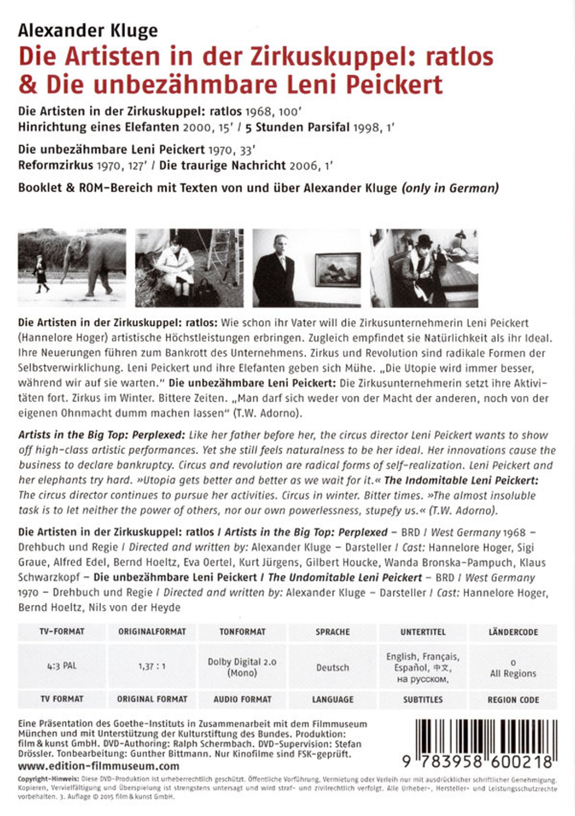 - Kurzfilm "Hinrichtung eines Elefanten"; Kurzfilm "5 Stunden Parsifal"; Kurzfilm "Reformzirkus"; Kurzfilm "Die traurige Nachricht"; Booklet & ROM-Bereich mit Texten von und über Alexander Kluge;