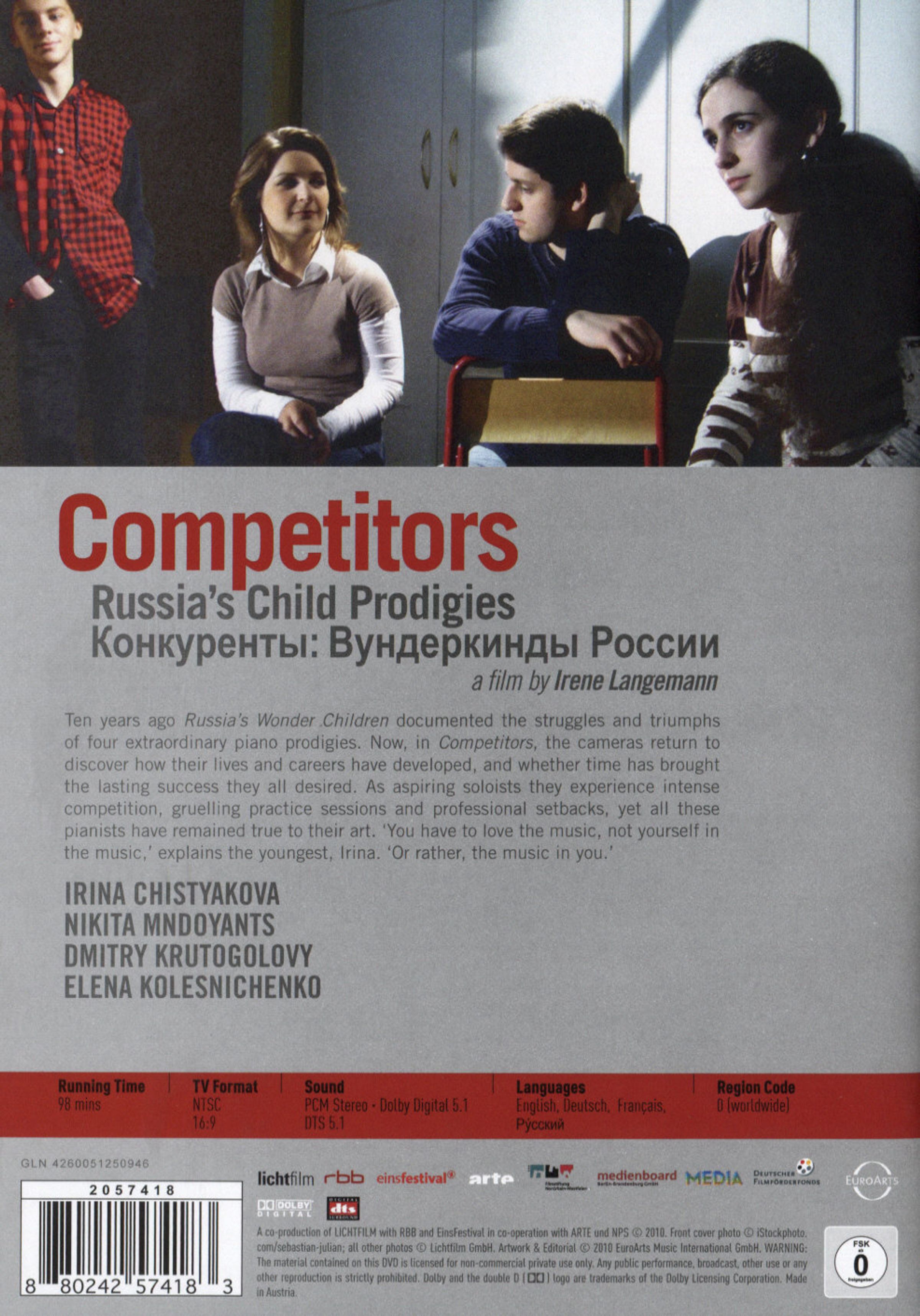 The DVD of this program will be released in November 2010. Ten years ago Russia’s Wonder Children documented the struggles and triumphs of four extraordinary piano prodigies. Now, in Competitors, the cameras return to discover how their lives and careers have developed, and whether time has brought the lasting success they all desired. As aspiring soloists they experience intense competition, gruelling practice sessions and professional setbacks, yet all these pianists have remained true to their art. ‘You have to love the music, not yourself in the music,’ explains the youngest, Irina. ‘Or rather, the music in you.’