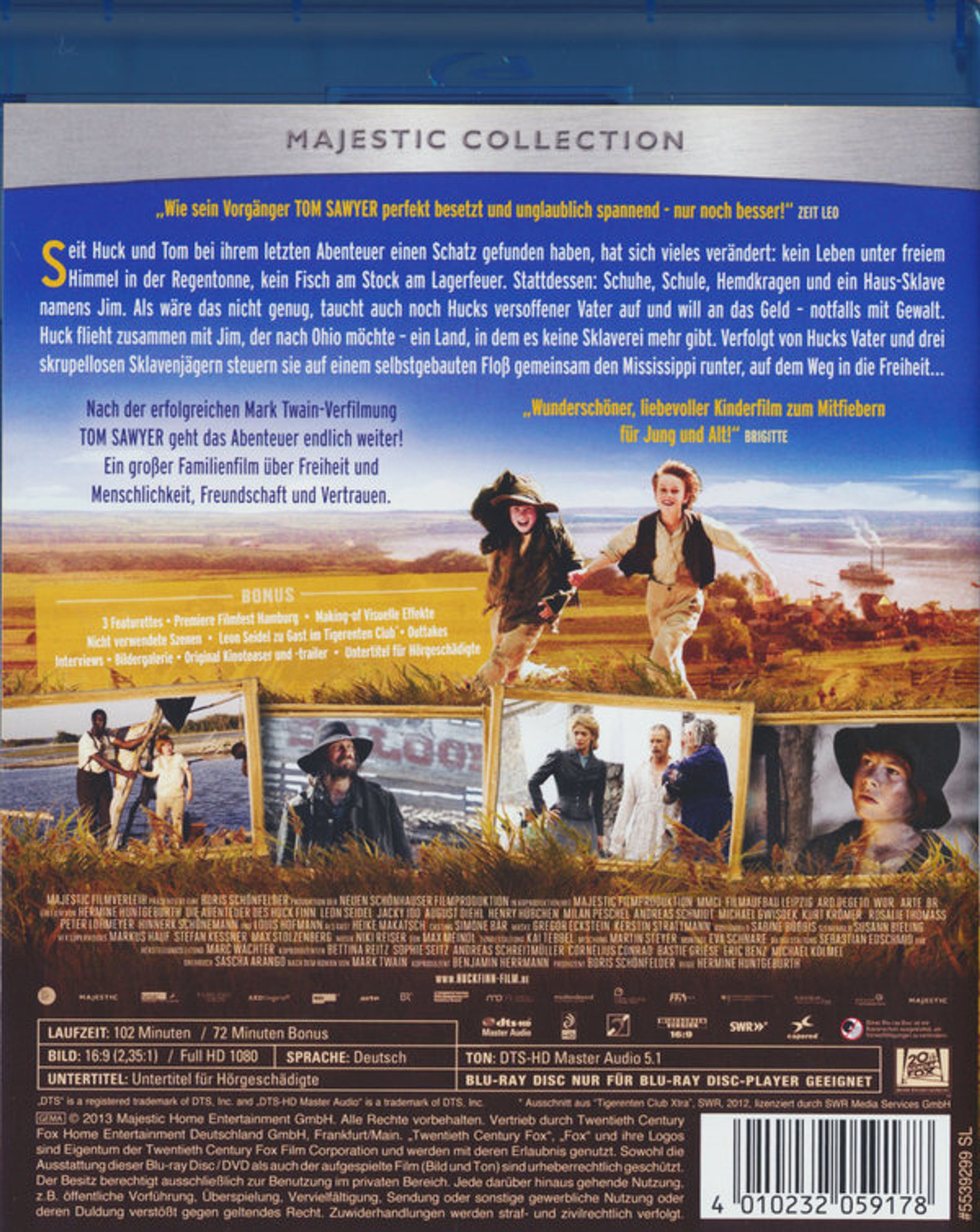 Seitdem Huck Finn einen Schatz gefunden hat, ist er ein reicher Mann - und mit dem Leben in Freiheit ist es vorbei. Er lebt bei der Witwe Douglas und deren Schwester Miss Watson, bedient vom braven Haussklaven Jim. Er muss einen Anzug tragen, Schule und Kirche besuchen. Ein Alptraum. Doch es kommt noch schlimmer: Sein alkoholsüchtiger Vater taucht auf und beansprucht Hucks Reichtum für sich. Der Junge entschließt sich zur Flucht - wie auch Jim. Und schon bald treiben die beiden - verfolgt von ebenso fiesen wie gemeinen Sklavenjägern - auf einem Floß den Mississippi hinunter.