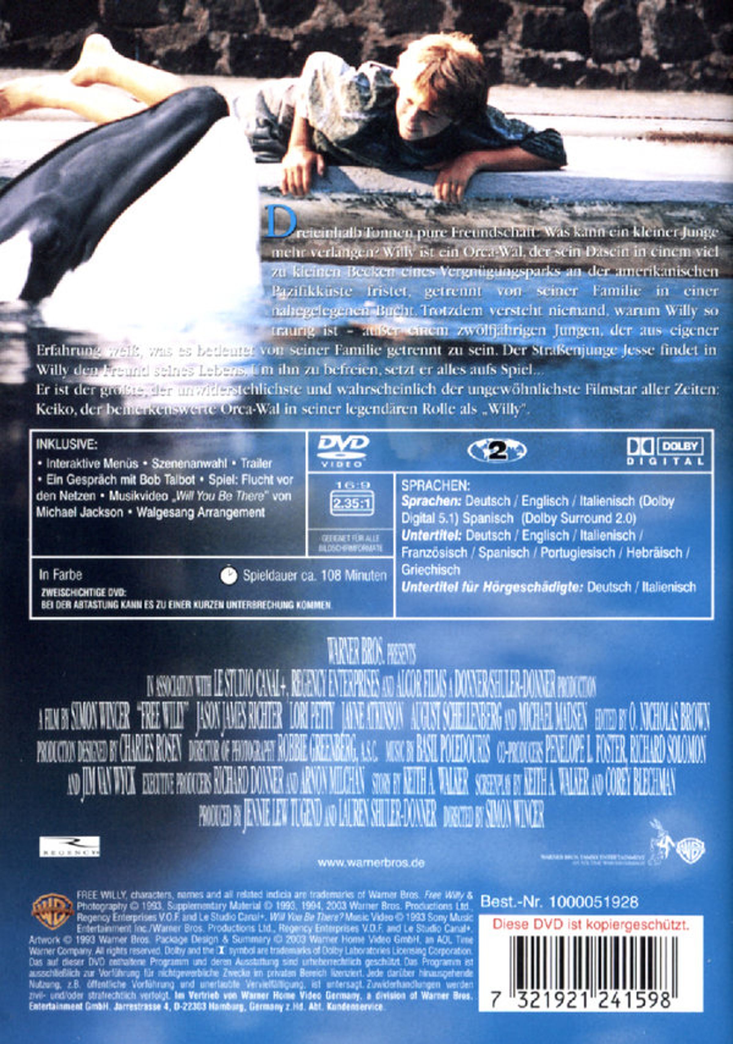 FREE WILLY ist ein ebenso romantischer, wie spannender und nachdenklicher Abenteuerfilm für klein und groß, für die ganze Familie und alle, denen das Leben und unsere Umwelt lieb und wichtig sind. Der Australier Simon Wincer führt eine behutsame Regie, vor allem mit seinem Stars, dem Jungen Jason James Richter und dem Orca-Killer-Wal Keiko, die beide erst mal Filmhauptrollen spielen.