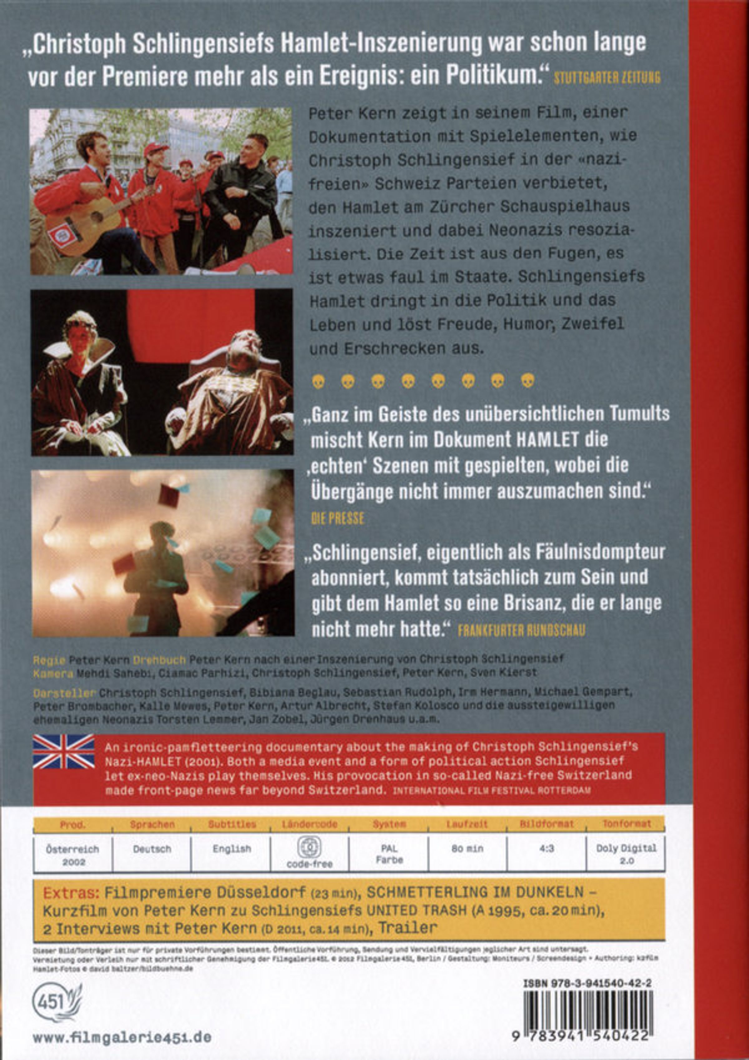 Peter Kern zeigt in seinem Film, einer Dokumentation mit Spielelementen, wie Christoph Schlingensief in der «nazifreien» Schweiz Parteien verbietet, den Hamlet am Zürcher Schauspielhaus inszeniert und dabei Neonazis resozialisiert. Die Zeit ist aus den Fugen, es ist etwas faul im Staate. Schlingensiefs Hamlet dringt in die Politik und das Leben und löst Freude, Humor, Zweifel und Erschrecken aus.