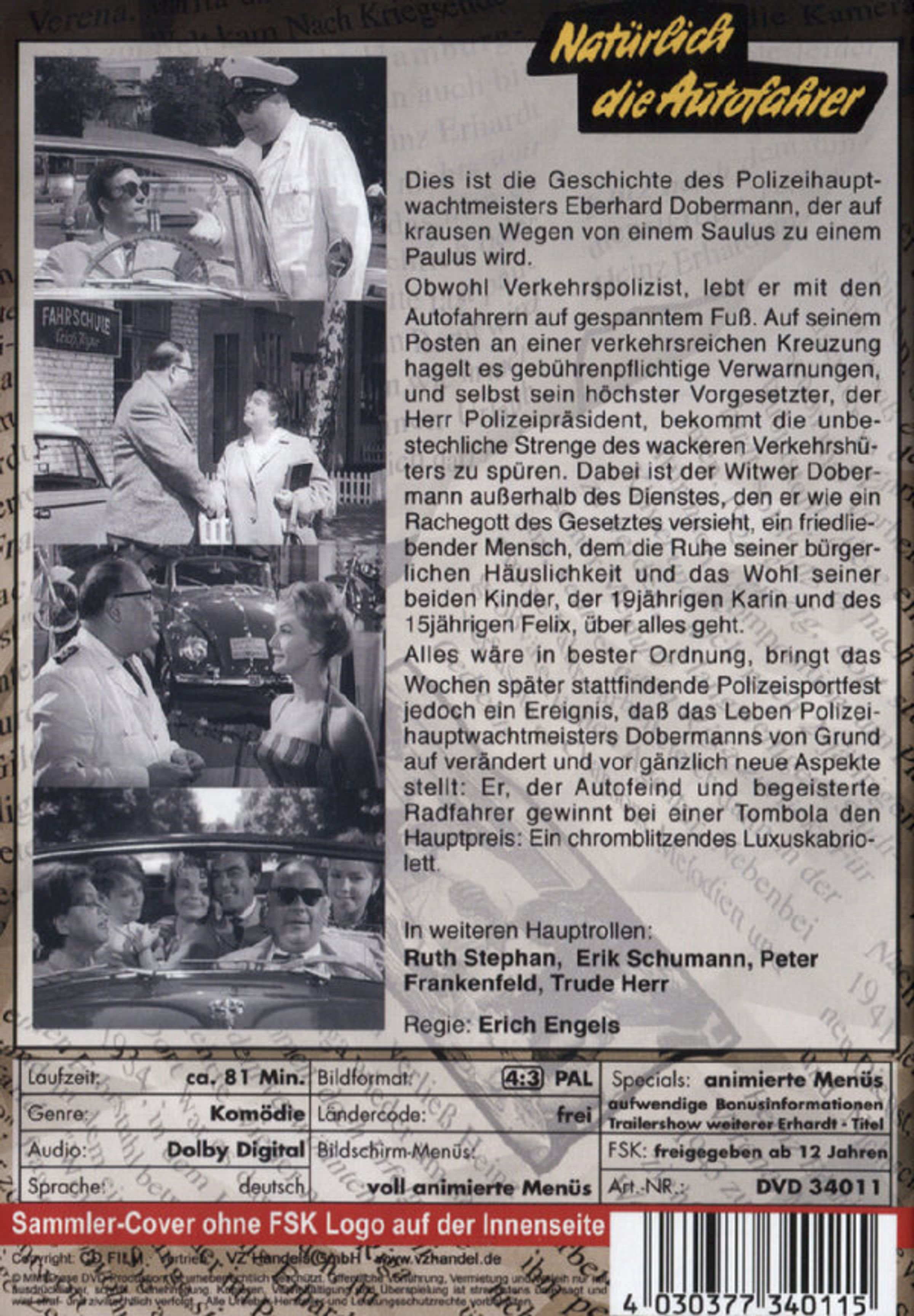 Dies ist die Geschichte des Polizeihauptwachtmeisters Eberhard Dobermann, der auf krausen Wegen von einem Saulus zu einem Paulus wird. - Obwohl Verkehrspolizist, lebt er mit den Autofahrern auf gespanntem Fuß. Auf seinem Posten an einer der verkehrsreichsten Kreuzungen hagelt es gebührenpflichtige Verwarnungen, und selbst sein höchster Vorgesetzter, der Herr Polizeipräsident, bekommt die unbestechliche Strenge des wackeren Verkehrshüters zu spüren. Dabei ist der Witwer Dobermann außerhalb des Dienstes, den er wie ein Rachegott des Gesetzes versieht, ein friedliebender Mensch, dem die Ruhe seiner bürgerlichen Häuslichkeit und das Wohl seiner beiden Kinder, der 19jährigen Karin und des 15jährigen Felix, über alles geht. Alles wäre in bester Ordnung, bringt das Wochen später stattfindende Polizeisportfest jedoch ein Ereignis, daß das Leben Polizeihauptwachtmeisters Dobermanns von Grund auf verändert und vor gänzlich neue Aspekte stellt: Er, der Autofeind und begeisterte Radfahrer gewinnt bei einer Tombola den Hauptpreis: Ein chromblitzendes Luxuskabriolett.