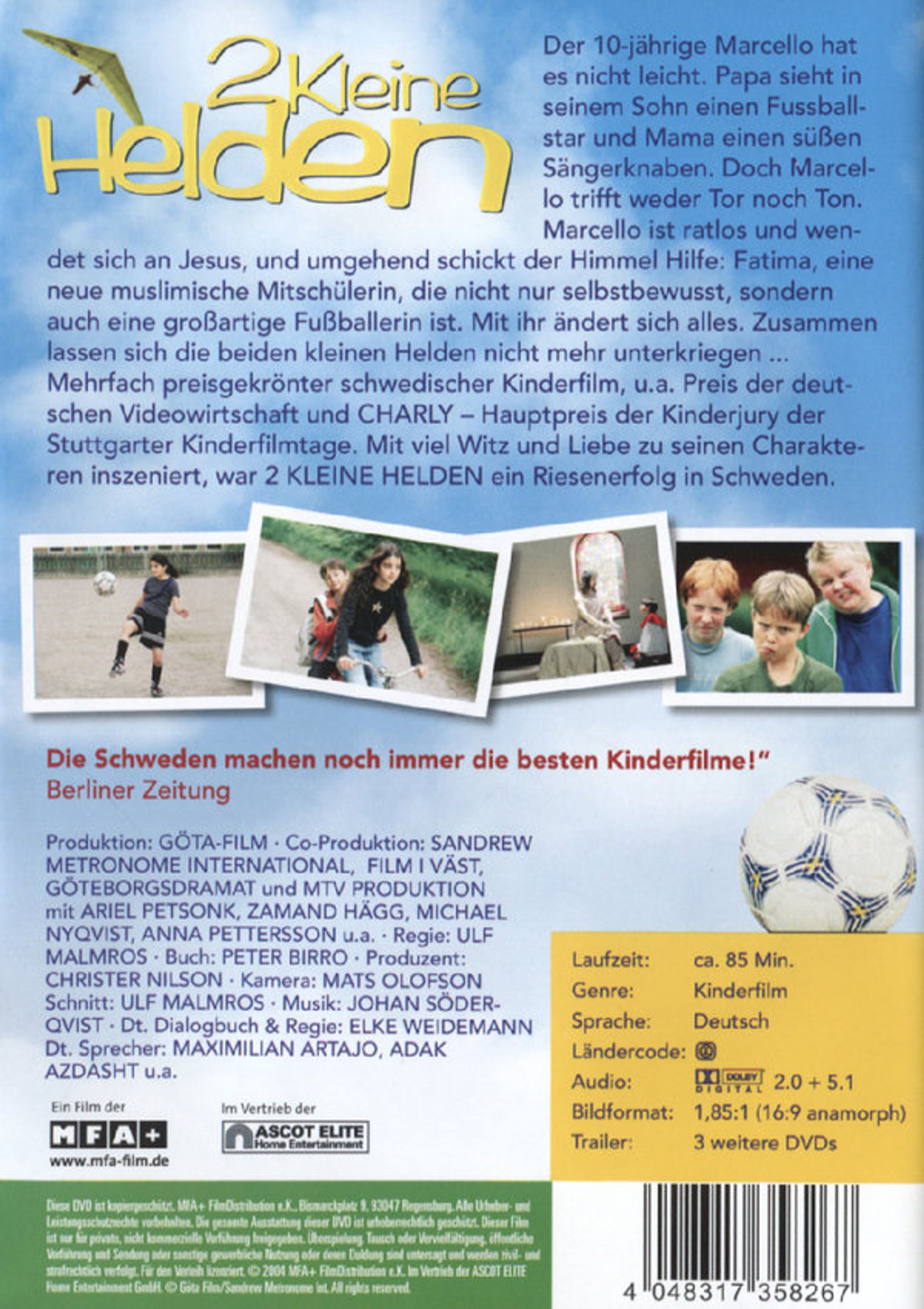 Mehrfach preisgekrönter schwedischer Kinderfilm, u. a. Preis der deutschen Videowirtschaft und CHARLY - Hauptpreis der Kinderjury der Stuttgarter Kinderfilmtage. Mit viel Witz und Liebe zu seinen Charakteren inszeniert, war 2 KLEINE HELDEN ein Riesenerfolg in Schweden.