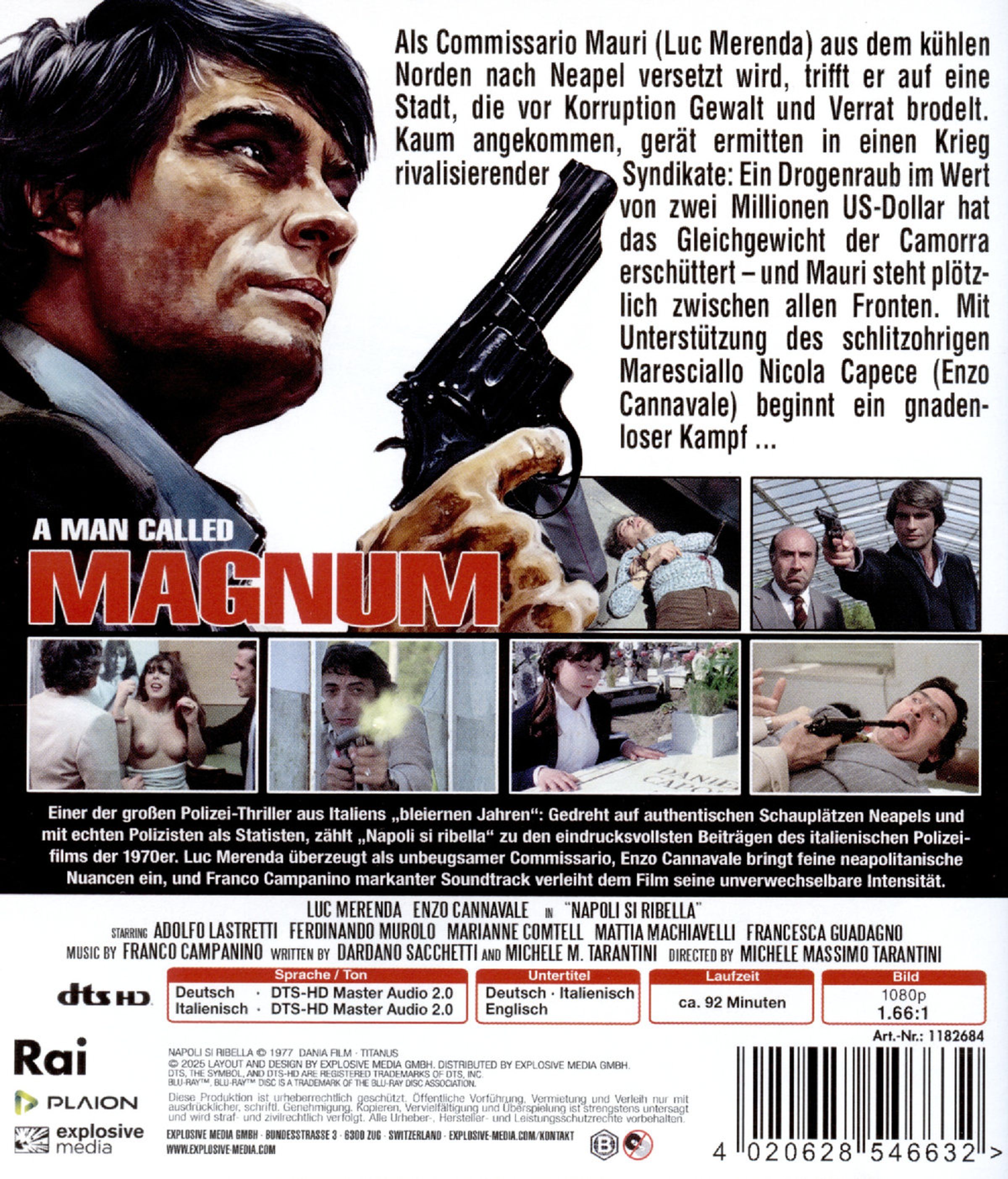 Die Stadt selbst wird zur Bühne für atemlose Verfolgungsjagden und explosive Konfrontationen, wobei Tarantini die Kulisse Neapels meisterhaft nutzt, um die raue Atmosphäre des Films zu unterstreichen. »A Man Called Magnum« ist ein Muss für Fans des italienischen Genrekinos. Luc Merenda liefert eine starke Performance, die von Tarantinis dynamischer Regie und einem packenden Soundtrack unterstützt wird. Trotz kleiner Schwächen in der Handlung - die zuweilen bekannten Pfaden folgt - überzeugt der Film durch seine Action, die starken Charaktere und die atmosphärische Darstellung Neapels. Für Liebhaber von Poliziotteschi ist dieser Film ein echtes Highlight, das die Essenz des Genres einfängt: roh, kompromisslos und unglaublich unterhaltsam.
