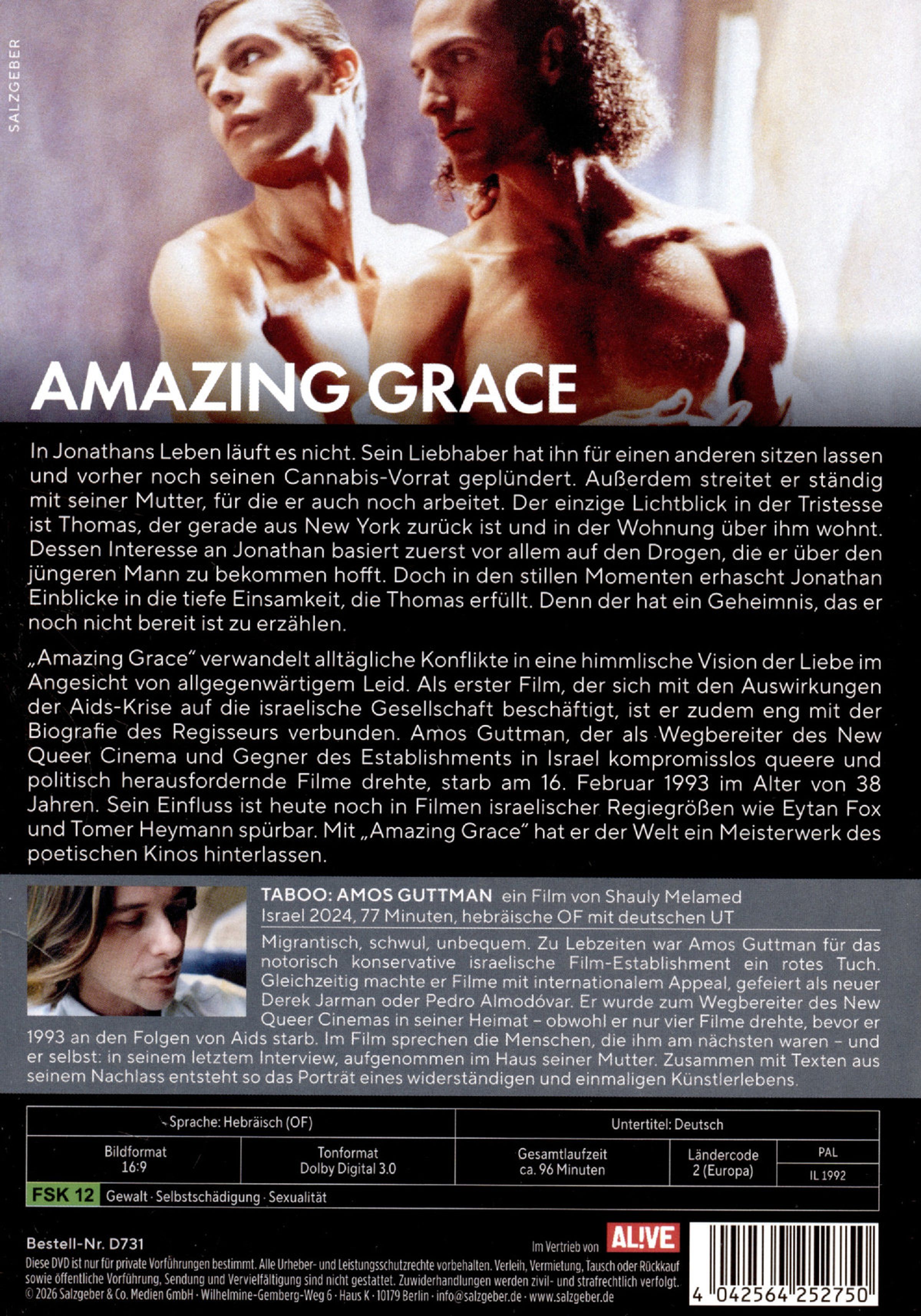 Amos Guttmans Klassiker »Amazing Grace« aus dem Jahr 1992 verwandelt Konflikte des Alltags in eine himmlische Vision der Liebe im Angesicht von allgegenwärtigem Leid. Als erster Film, der sich mit den Folgen der Aids-Krise auf die israelische Gesellschaft beschäftigt, ist er zudem eng mit der Biografie des Regisseurs verbunden: Amos Guttman, der als Wegbereiter des New Queer Cinema und Gegner des Establishments in Israel konsequent queere und politisch unbequeme Filme drehte, starb am 16. Februar 1993 im Alter von 38 Jahren. Sein Einfluss ist heute noch in Filmen israelischer Regiegrößen wie Eytan Fox und Tomer Heymann spürbar. Mit »Amazing Grace« hat er der Welt ein Meisterwerk des poetischen Kinos hinterlassen.