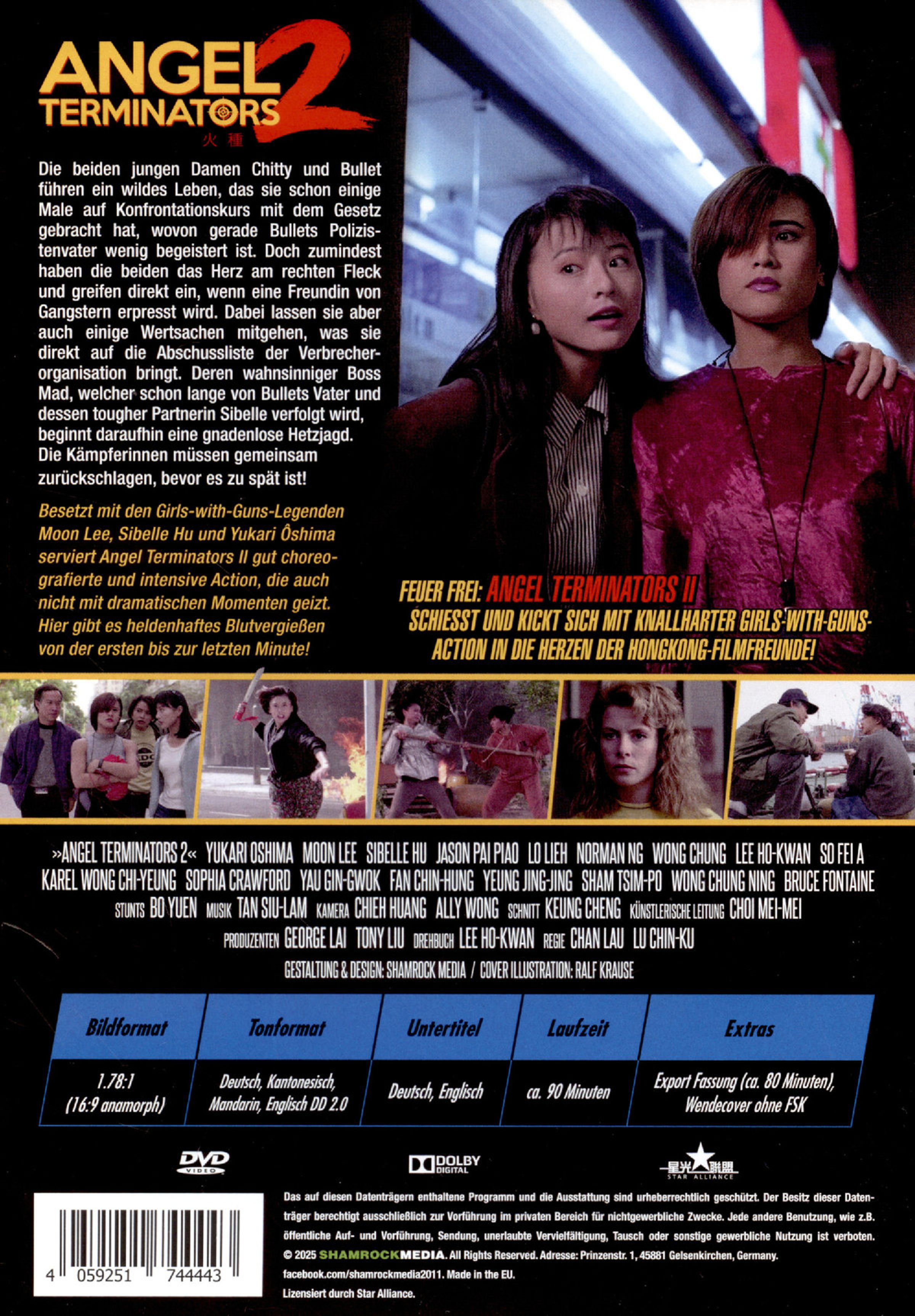 Feuer frei: »Angel Terminators II« schießt und kickt sich mit knallharter Girls-with-Guns-Action in die Herzen der Hongkong-Filmfreunde! Die beiden jungen Damen Chitty und Bullet führen ein wildes Leben, das sie schon einige Male auf Konfrontationskurs mit dem Gesetz gebracht, wovon gerade Bullets Polizistenvater wenig begeistert ist. Doch zumindest haben die beiden das Herz auf dem rechten Fleck und greifen direkt ein, wenn eine Freundin von Gangstern erpresst wird. Dabei lassen sie aber auch einige Wertsachen mitgehen, was sie direkt auf die Abschussliste der Verbrecherorganisation bringt. Deren wahnsinniger Boss Mad, welcher schon lange von Bullets Vater und dessen tougher Partnerin Sibelle verfolgt wird, beginnt daraufhin eine gnadenlose Hetzjagd. Die Kämpferinnen müssen gemeinsam zurückschlagen, bevor es zu spät ist! Besetzt mit den Girls-with-Guns-Legenden Moon Lee, Sibelle Hu und Yukari Oshima serviert Angel Terminator II gut choreografierte und intensive Action, die auch nicht mit dramatischen Momenten geizt. Hier gibt es heldenhaftes Blutvergießen von der ersten bis zur letzten Minute!