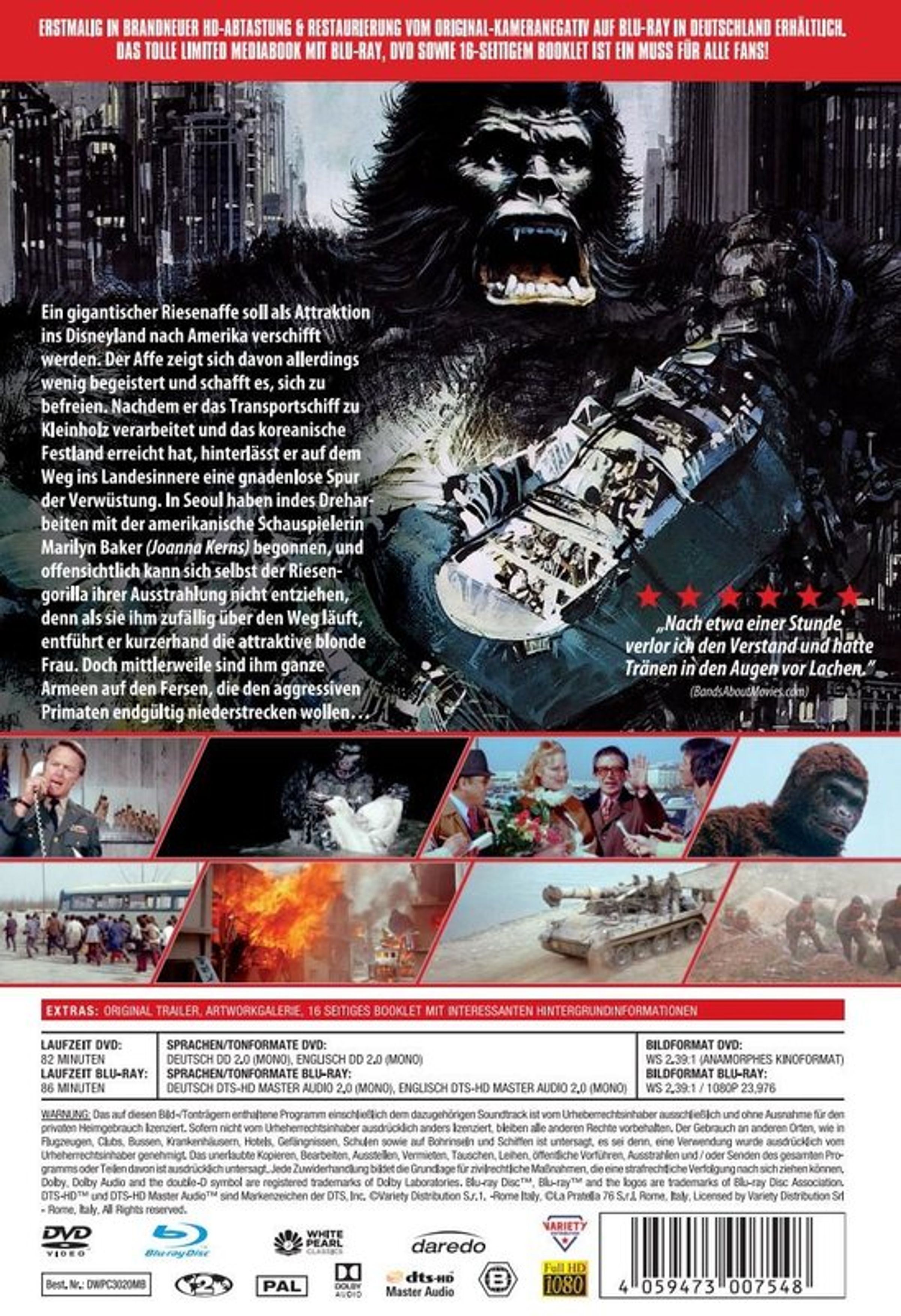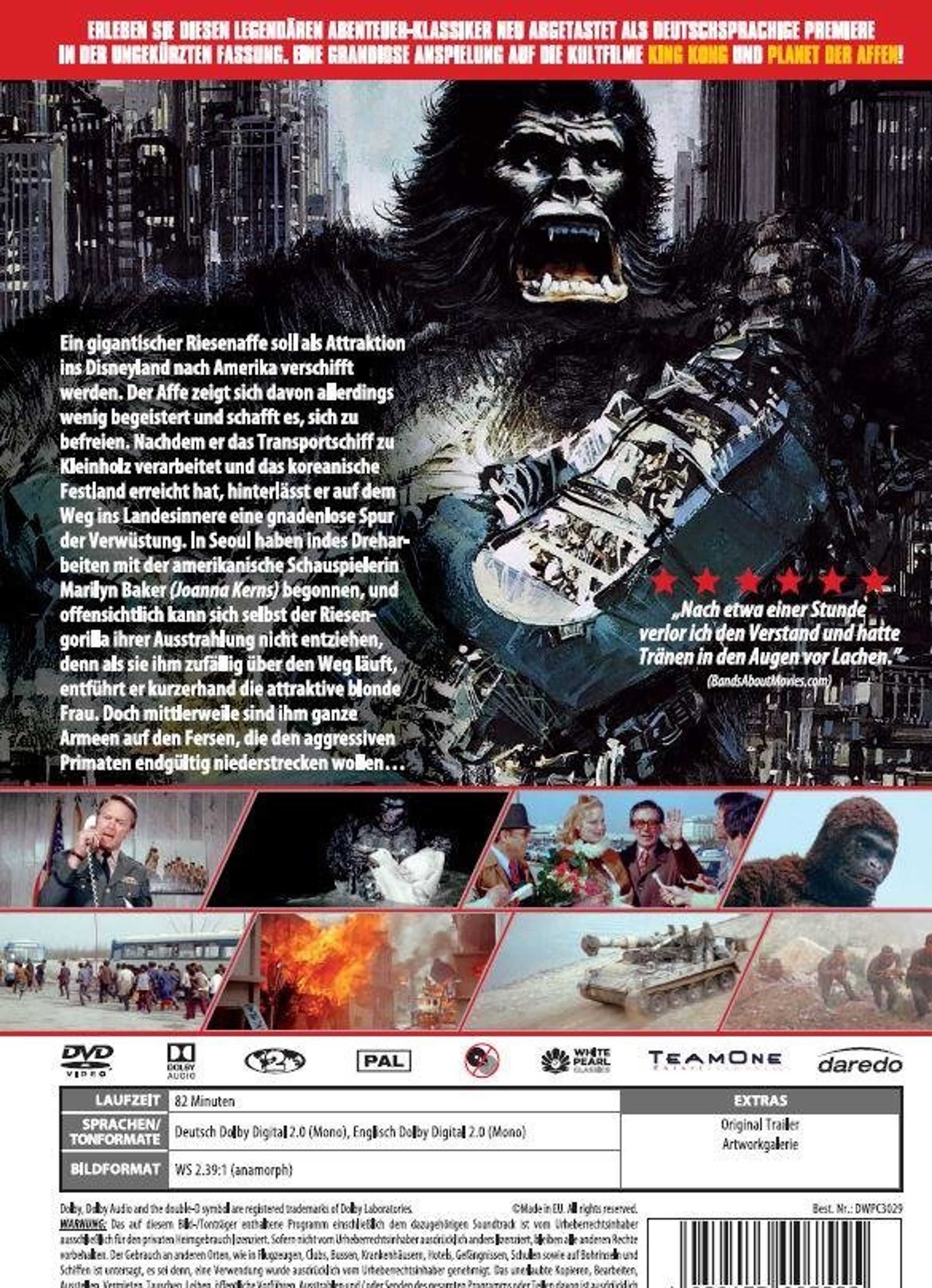 Weg läuft, entführt er kurzerhand die attraktive blonde Frau. Doch mittlerweile sind ihm ganze Armeen auf den Fersen, die den aggressiven Primaten