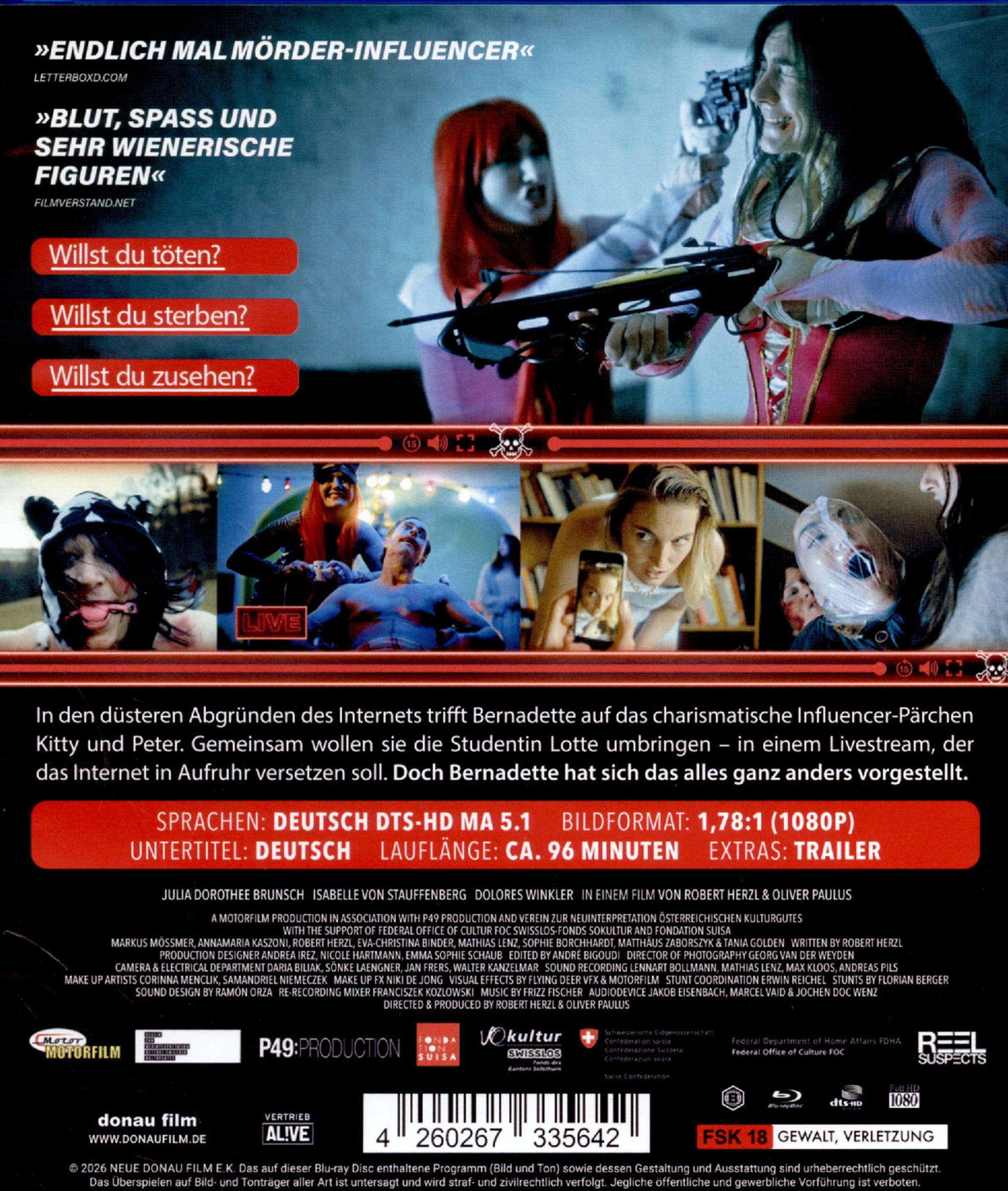In den düsteren Abgründen des Internets trifft Bernadette auf das charismatische Influencer-Pärchen Kitty und Peter. Gemeinsam wollen sie die Studentin Lotte umbringen - in einem Livestream, der das Internet in Aufruhr versetzen soll. Doch Bernadette hat sich das alles ganz anders vorgestellt.