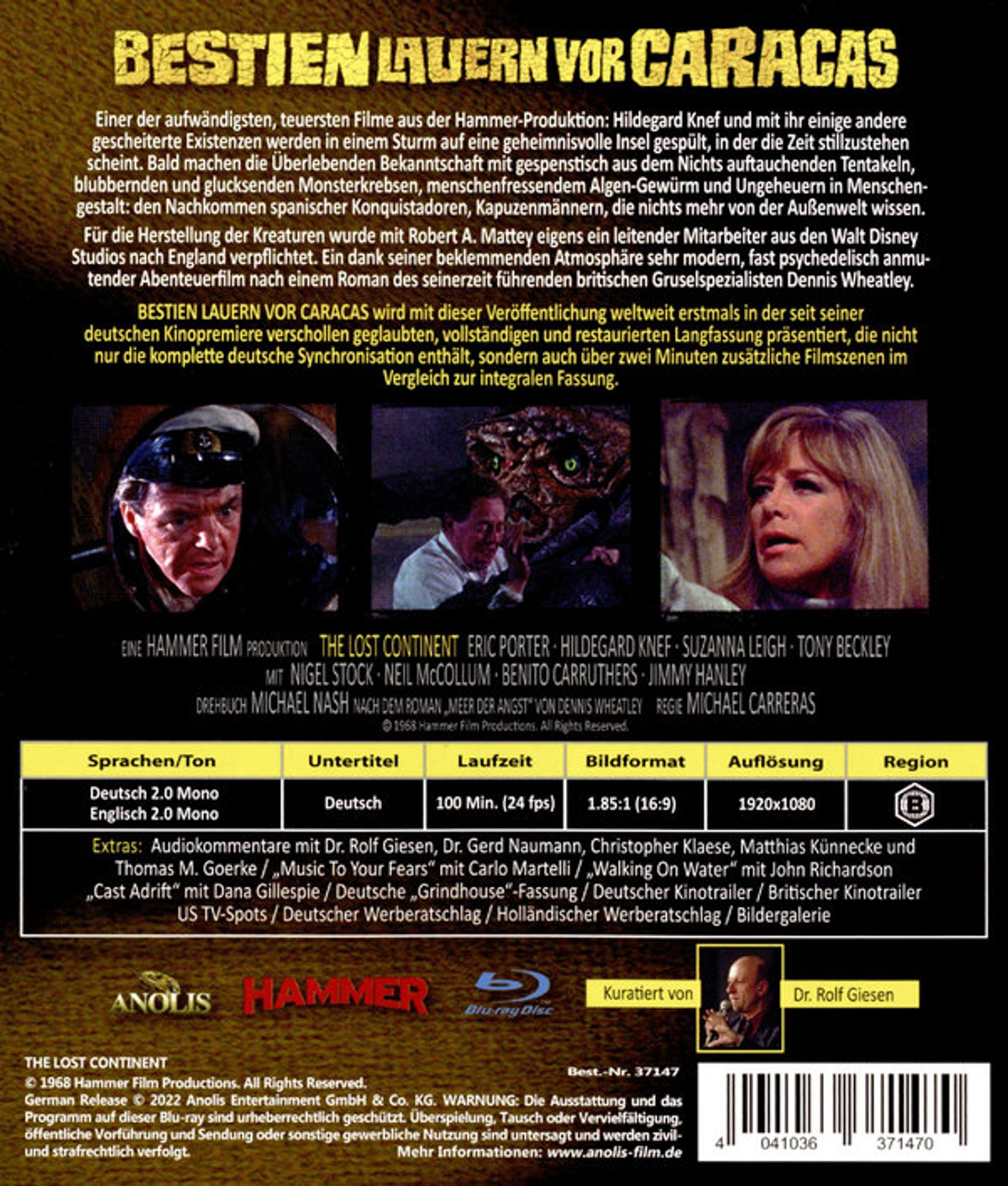 BESTIEN LAUERN VOR CARACAS wird mit dieser Veröffentlichung weltweit erstmals in der seit seiner deutschen Kinopremiere verschollen geglaubten, vollständigen und restaurierten Langfassung präsentiert, die nicht nur die komplette deutsche Synchronisation enthält, sondern auch über zwei Minuten zusätzliche Filmszenen im Vergleich zur integralen Fassung.
