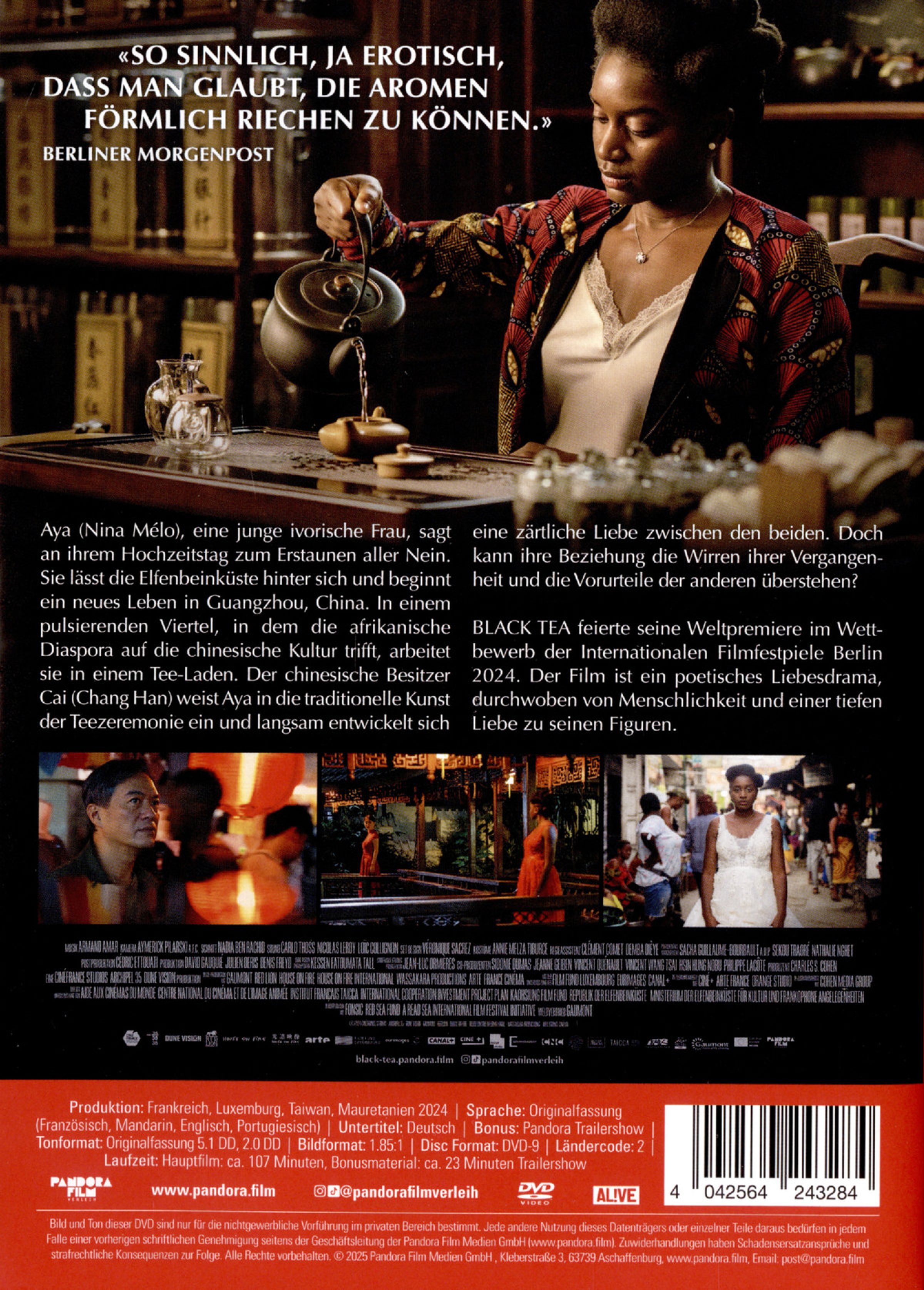 Der in Mauretanien geborene und in Mali aufgewachsene Drehbuchautor und Regisseur Abderrahmane Sissako legt mit BLACK TEA sein neuestes Werk nach TIMBUKTU (2014) vor. TIMBUKTU lief im Wettbewerb von Cannes und wurde dort u. a. mit dem Preis der Ökumenischen Jury ausgezeichnet, wurde mit sieben Césars ausgezeichnet und ging für Mauretanien ins Rennen um den Auslands-Oscar. Wie auch bei TIMBUKTU schrieb Sissako das Drehbuch zu BLACK TEA gemeinsam mit seiner Frau und Produzentin Kessen Tall. Angesiedelt in der afrikanischen Diaspora in Guangzhou, in Chinas Teebergen, an der Elfenbeinküste und auf den Kapverden, werfen sie einen höchst faszinierenden Blick auf die Verflechtung der Kulturen in unserer heutigen globalisierten Welt. BLACK TEA ist ein poetisches Liebesdrama, durchwoben von Menschlichkeit und einer tiefen Liebe zu seinen Figuren.