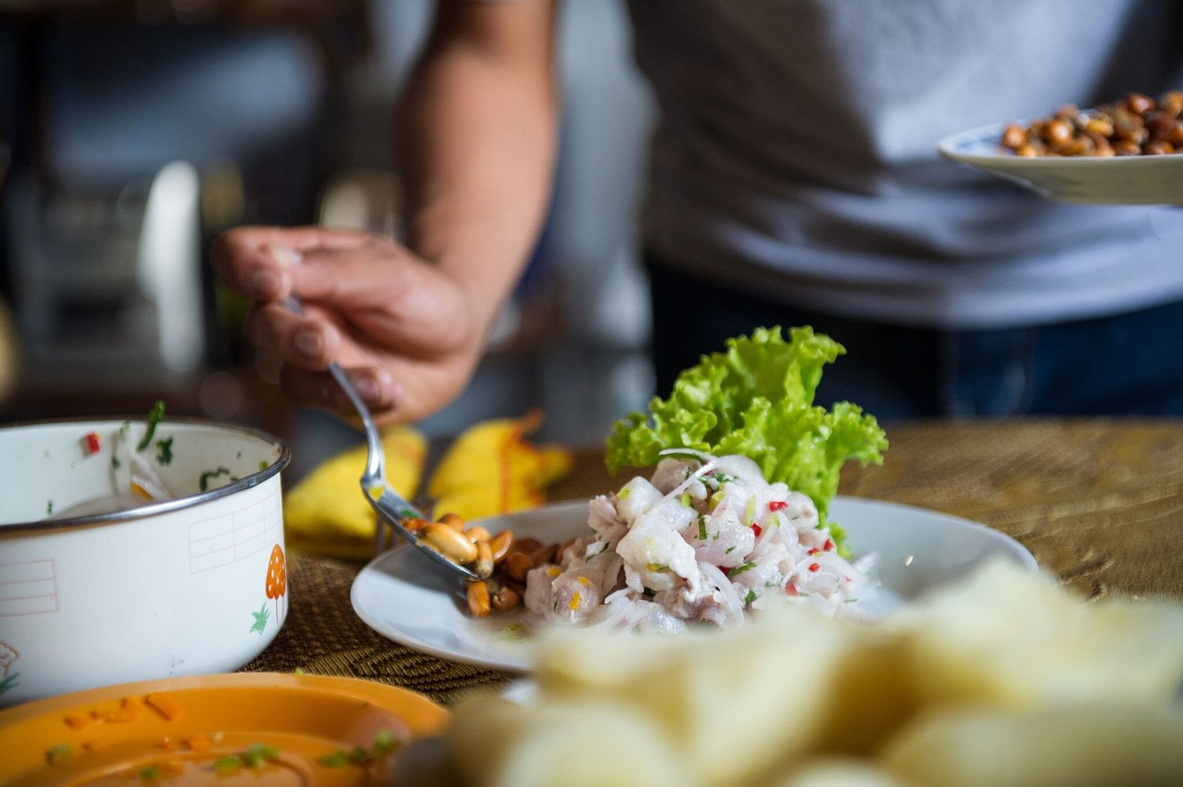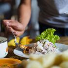 Das wichtigste Gericht hierbei ist der Ceviche, frischer Fisch oder Meeresfrüchte, mariniert im Saft der Zitrone mit Koriander, Chilli sowie den Beilagen Mais und Süsskartoffeln.