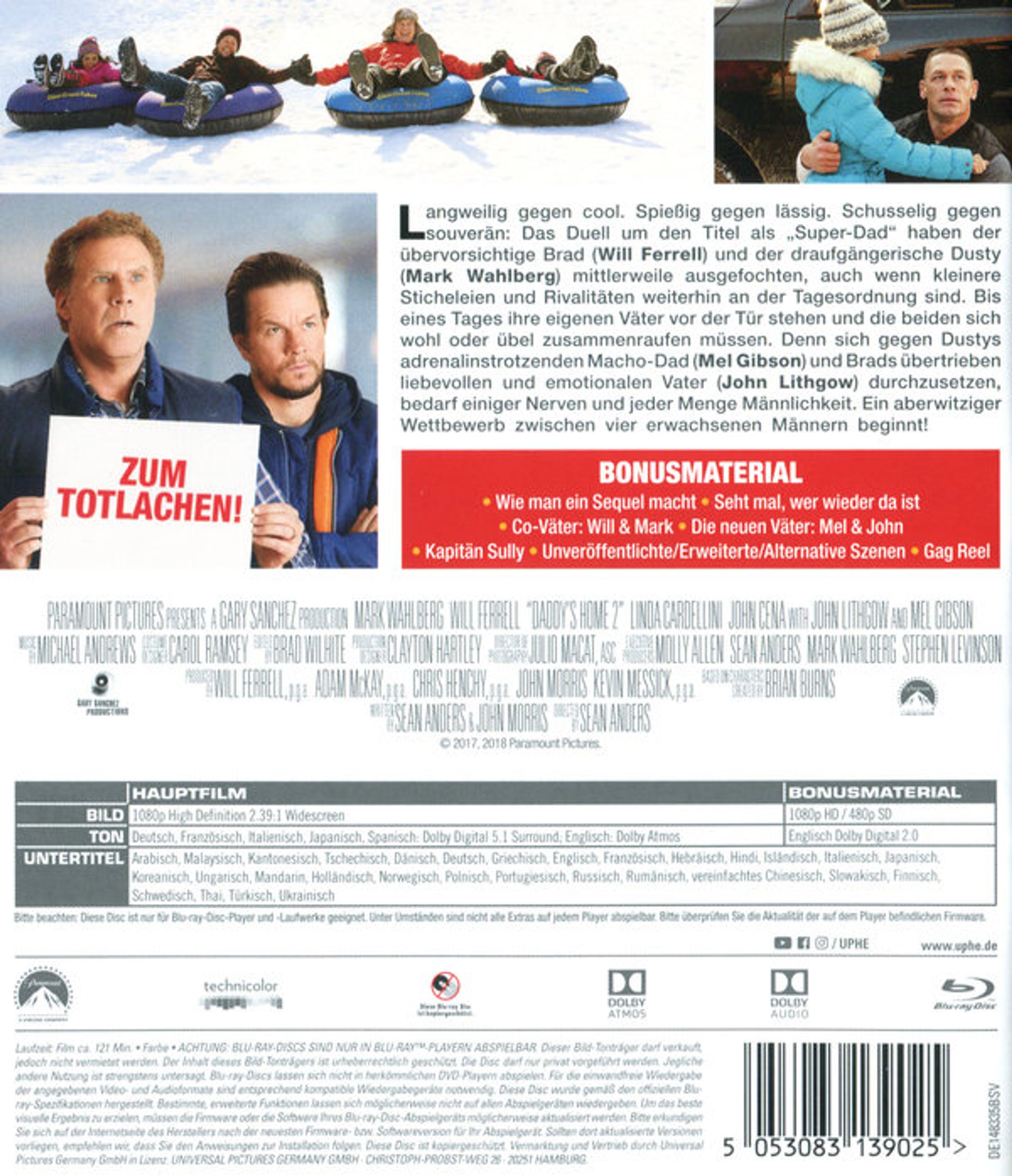 Langweilig gegen cool. Spießig gegen lässig. Schusselig gegen souverän: Das Duell um den Titel als »Super-Dad« haben der übervorsichtige Brad und der draufgängerische Dusty mittlerweile ausgefochten, auch wenn kleinere Sticheleien und Rivalitäten weiterhin an der Tagesordnung sind. Bis eines Tages ihre eigenen Väter vor der Tür stehen und die beiden sich wohl oder übel zusammenraufen müssen. Denn sich gegen Dustys adrenalinstrotzenden Macho-Dad und Brads übertrieben liebevollen und emotionalen Vater durchzusetzen, bedarf einiger Nerven und jeder Menge Männlichkeit. Ein aberwitziger Wettbewerb zwischen vier erwachsenen Männern beginnt...!