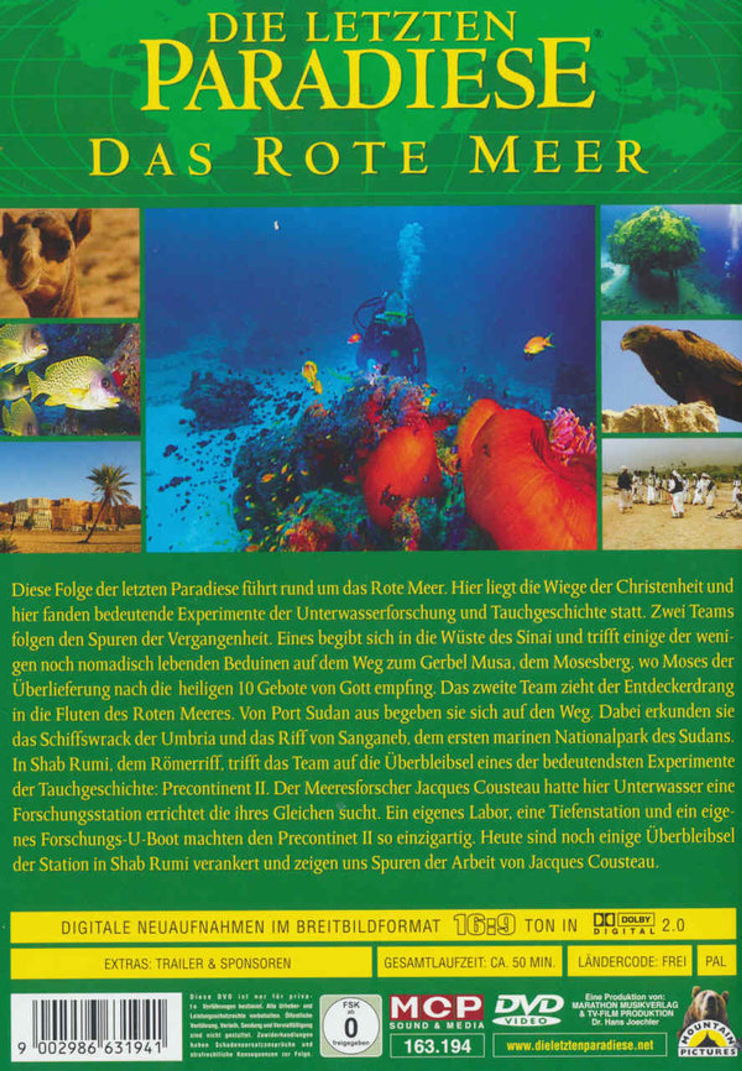 Ein Tauchparadies von atemberaubender Schönheit, Wracks, die in die Geschichte eingingen, gewaltige Hochhäuser aus Wüstensand und spannende Einblicke in das Leben eines traditionell kriegerischen Nomadenvolks – all das bietet die Sendung rund um das Rote Meer. Im bis zu 2604 Meter tiefen Roten Meer zwischen Nordost-Afrika und der arabischen Halbinsel tummeln sich unzählige Fische von schier unglaub. licher Farbenpracht. Das begeisterte auch den berühmten Meeresforscher Jacques Cousteau und er errichtete vor rund 50 Jahren am Riff von Shab Rumi seine legendäre Unterwasserstation. Heute sind die Bauten von Korallen überzogen. Doch wie gefährlich die Aquanauten damals lebten und arbeiteten, zeigt das Fernsehteam in faszinierenden Bildern. Ein spannender Tauchgang in die Vergangenheit ist auch die Suche nach dem italienischen Truppentransporter »Umbria«, den die deutsche Tauchlegende Hans Hass vor Port Sudan entdeckte. Doch warum versenkte der Kapitän 1940 damals in panischer Angst sein Schiff vor den englischen Verfolgern? Die Erklärung finden Hans Jöchler und Marco D. Biemann in den Laderäumen. Ein Weltkulturerbe der besonderen Art steht in Shibam im Jemen. Die sensationelle Skyline dieser Wüstenstadt kann sich durchaus mit anderen Metropolen messen. Einziger Unterschied: Die 30 Meter hohen, bis zu elfstöckigen Hochhäuser sind ausschließlich aus Sand gebaut. Das TV-Team ist außerdem auf dem Berg Sinai, der Wiege der Christenheit, zeigt das harte Leben eines Beduinenvolks und ist zu Gast bei den traditionell kriegerischen Nomaden der Hadandoa, die Meister in der Herstellung von ganz besonderen Schwertern sind.