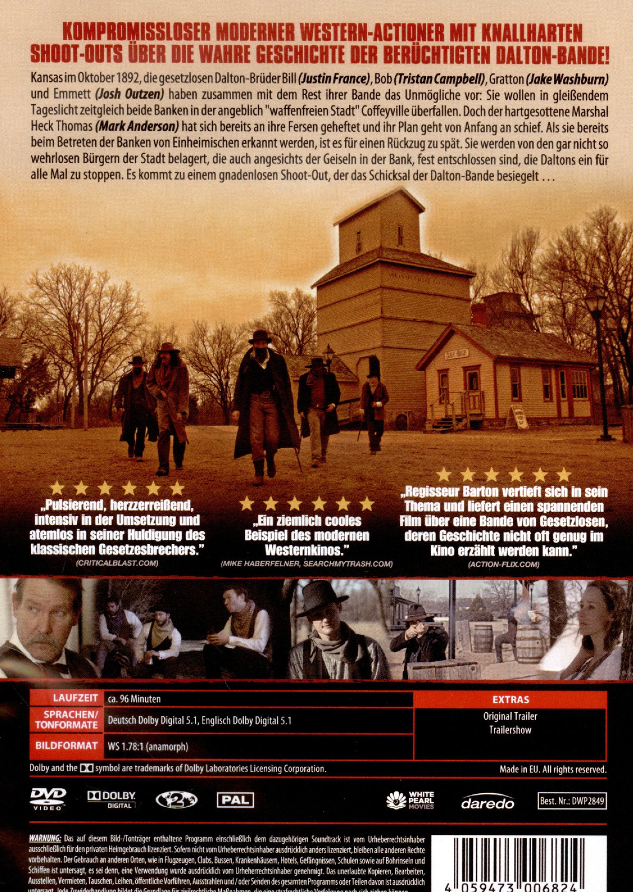 Kansas im Oktober 1892, die gesetzlosen Dalton-Brüder Bill. Bob, Gratton und Emmett haben zusammen mit dem Rest ihrer Bande das Unmögliche vor: Sie wollen in gleißendem Tageslicht zeitgleich beide Banken in der angeblich »waffenfreien Stadt« Coffeyville überfallen. Doch der hartgesottene Marshal Heck Thomas hat sich bereits an ihre Fersen geheftet und ihr Plan geht von Anfang an schief. Als sie bereits beim Betreten der Banken von Einheimischen erkannt werden, ist es für einen Rückzug zu spät. Sie werden von den gar nicht so wehrlosen Bürgern der Stadt belagert, die auch angesichts der Geiseln in der Bank, fest entschlossen sind, die Daltons ein für alle Mal zu stoppen. Es kommt zu einem gnadenlosen Shoot-Out, der das Schicksal der Dalton-Bande besiegelt...