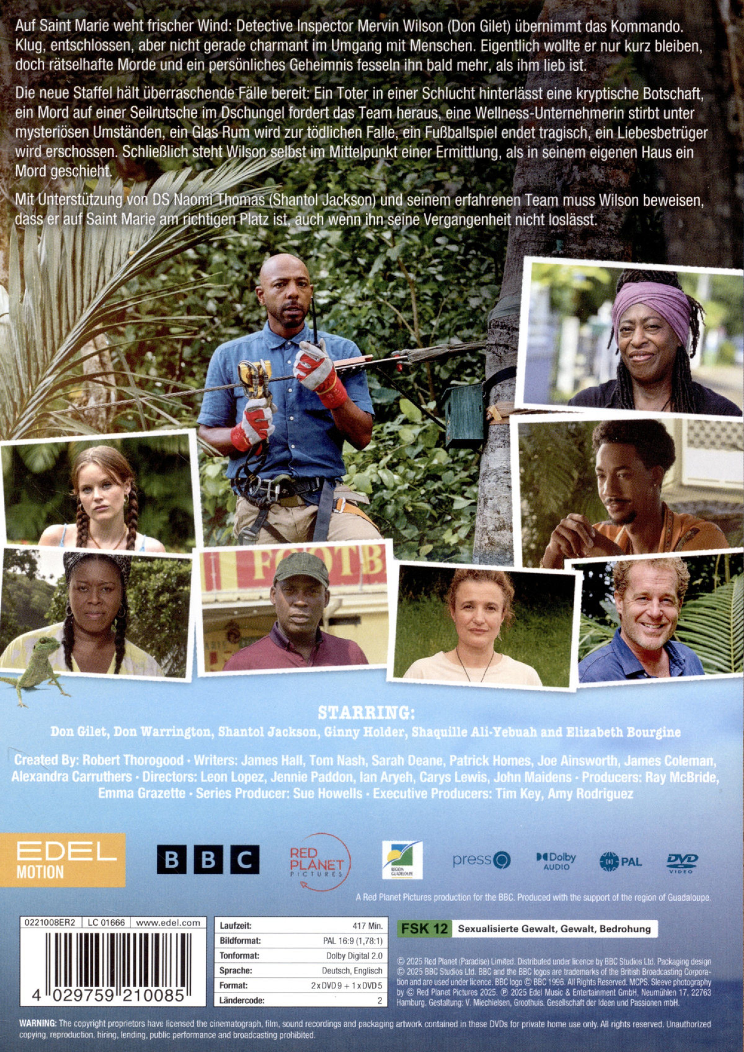Auf Saint Marie weht frischer Wind: Detective Inspector Mervin Wilson übernimmt das Kommando. Klug, entschlossen - aber nicht gerade charmant im Umgang mit Menschen. Eigentlich wollte er nur kurz bleiben, doch rätselhafte Morde und ein persönliches Geheimnis fesseln ihn bald mehr, als ihm lieb ist. Die neue Staffel hält überraschende Fälle bereit: Ein Toter in einer Schlucht hinterlässt eine kryptische Botschaft, ein Mord auf einer Seilrutsche im Dschungel fordert das Team heraus, eine Wellness-Unternehmerin stirbt unter mysteriösen Umständen, ein Glas Rum wird zur tödlichen Falle, ein Fußballspiel endet tragisch, ein Liebesbetrüger wird erschossen - und schließlich steht Wilson selbst im Mittelpunkt einer Ermittlung, als in seinem eigenen Haus ein Mord geschieht. Unterstützt von DS Naomi Thomas und dem eingespielten Ermittlerteam, das auch mit privaten Herausforderungen ringt, muss Wilson beweisen, dass er der Richtige für Saint Marie ist - selbst, wenn ihn seine Vergangenheit nicht loslässt.