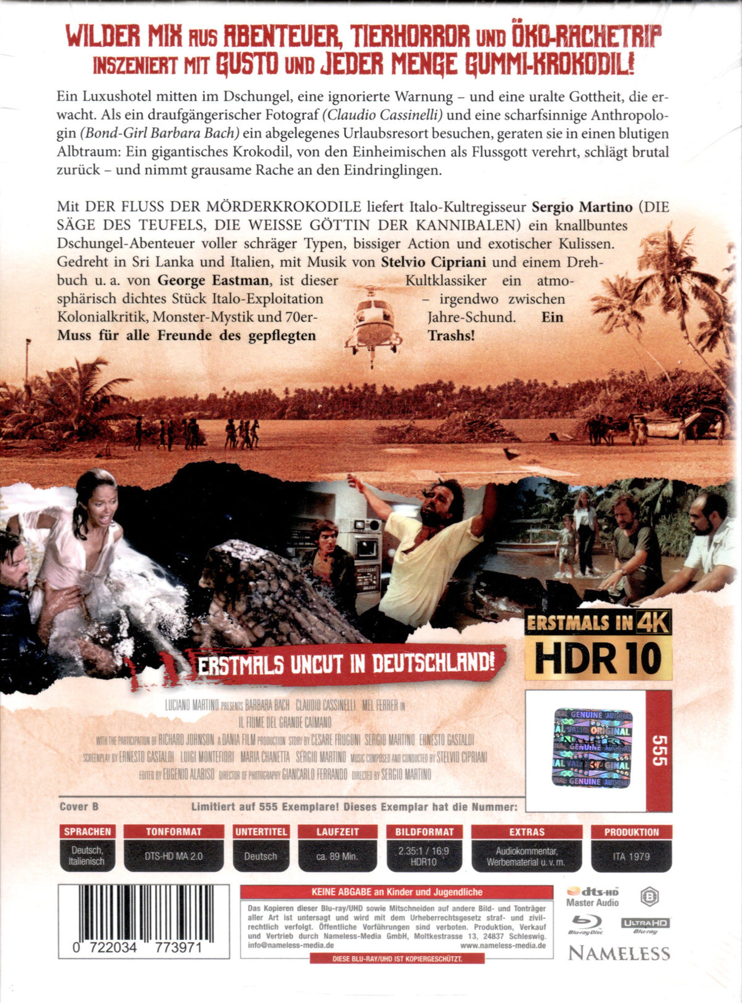 Mit »Der Fluss der Mörderkrokodile« liefert Italo-Kultregisseur Sergio Martino ein knallbuntes Dschungel-Abenteuer voller schräger Typen, bissiger Action und exotischer Kulissen. Gedreht in Sri Lanka und Italien, mit Musik von Stelvio Cipriani und einem Drehbuch u. a. von George Eastman, ist dieser Kultklassiker ein atmosphärisch dichtes Stück Italo-Exploitation - irgendwo zwischen Kolonialkritik, Monster-Mystik und 70er-Jahre-Schund. Ein Muss für alle Freunde des gepflegten Trashs!