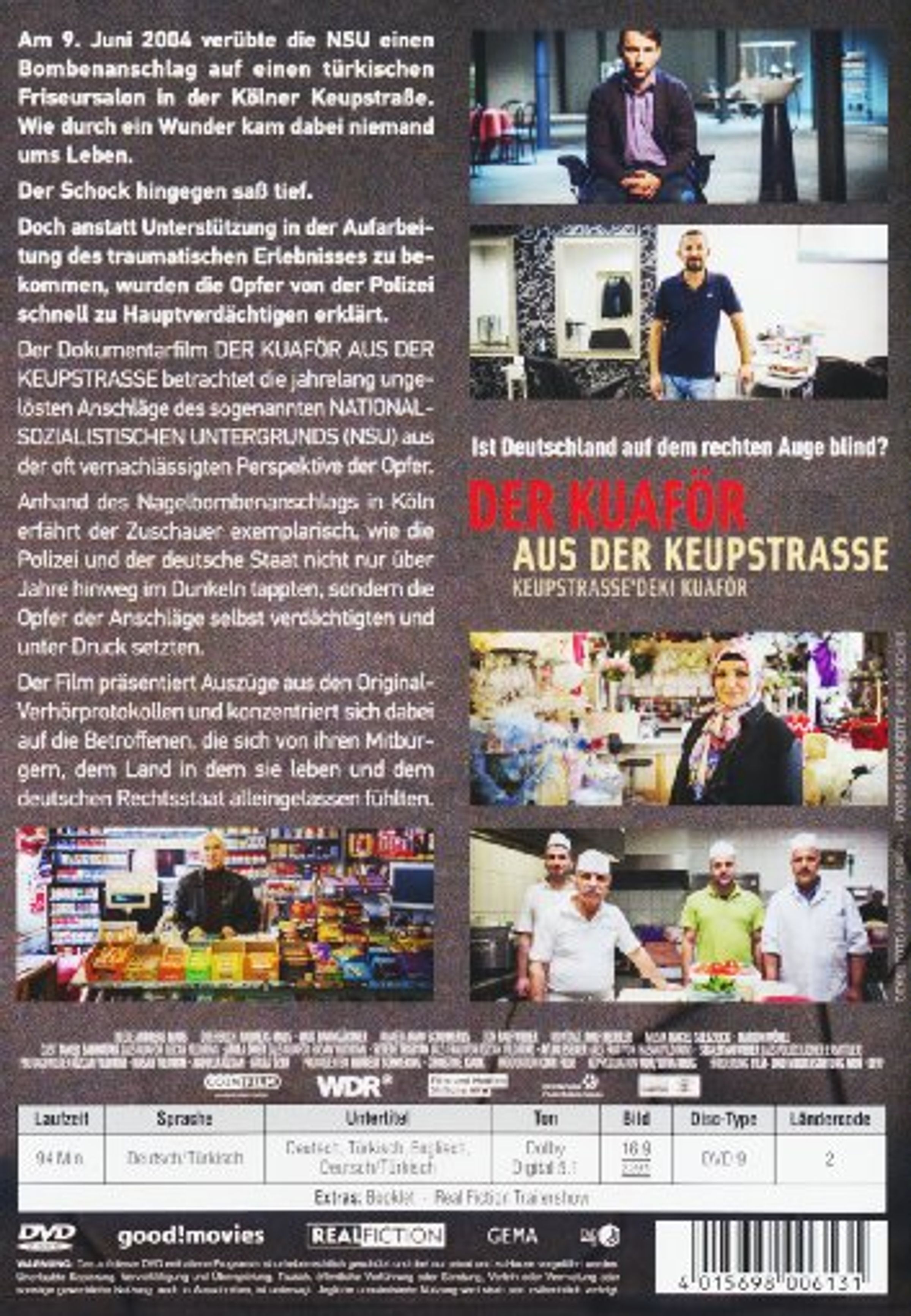 Erst Jahre später wurde der Anschlag dem sogenannten Nationalsozialistischen Untergrund (NSU) zugeordnet. So wie in Köln wurden auch in den anderen Städten, in denen der NSU gemordet hat, zumeist die Angehörigen und ihr Umfeld verdächtigt. Der Film eröffnet die Diskussion über die Frage einer strukturellen Fremdenfeindlichkeit in Deutschland auf eine neue Art, nämlich aus der Perspektive der Betroffenen.